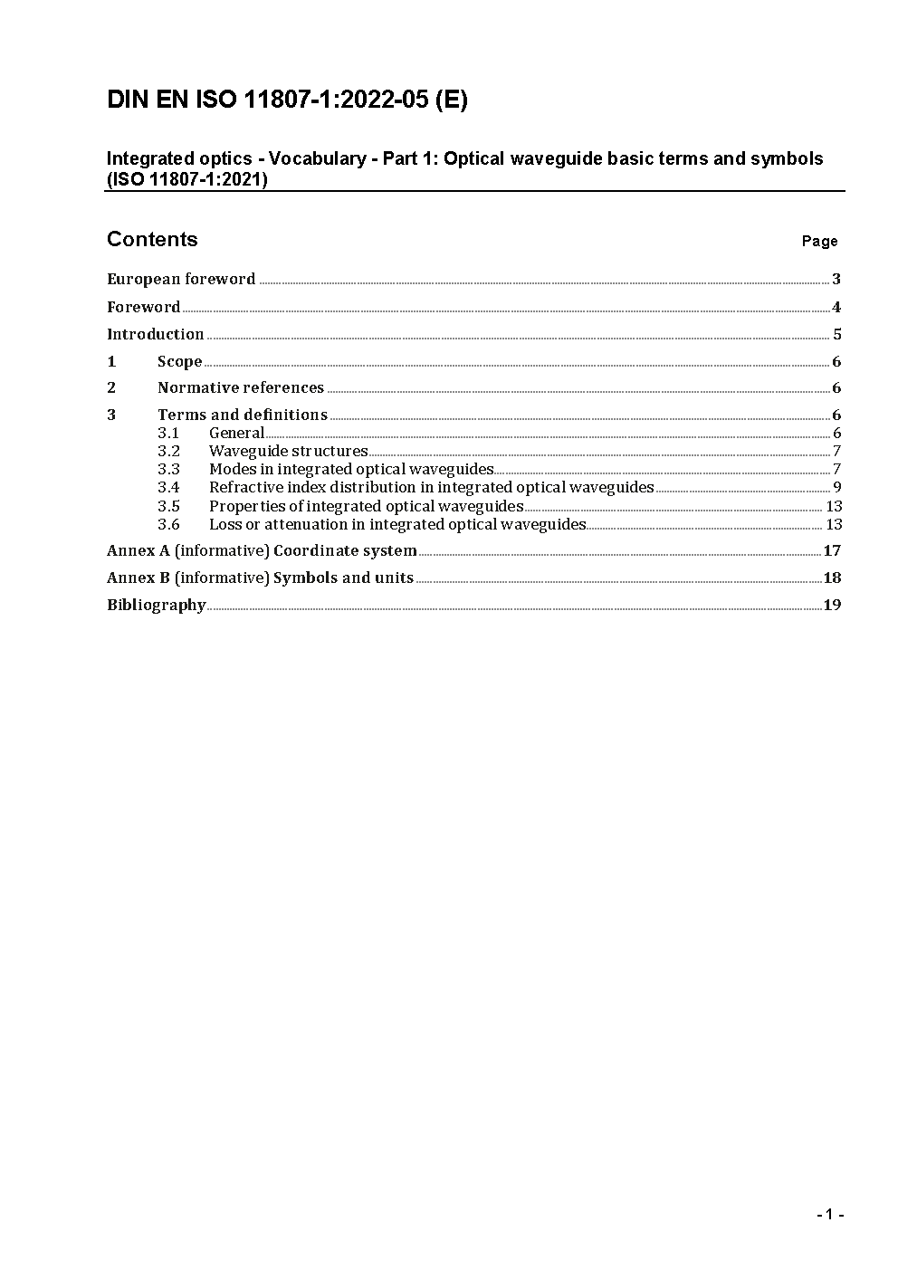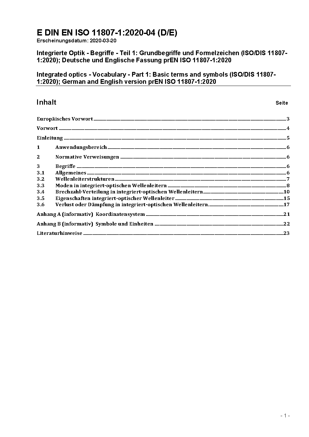 Integrated optics - Vocabulary - Part 1: Basic terms and symbols (ISO 11807-1:2001); German version EN ISO 11807-1:2005