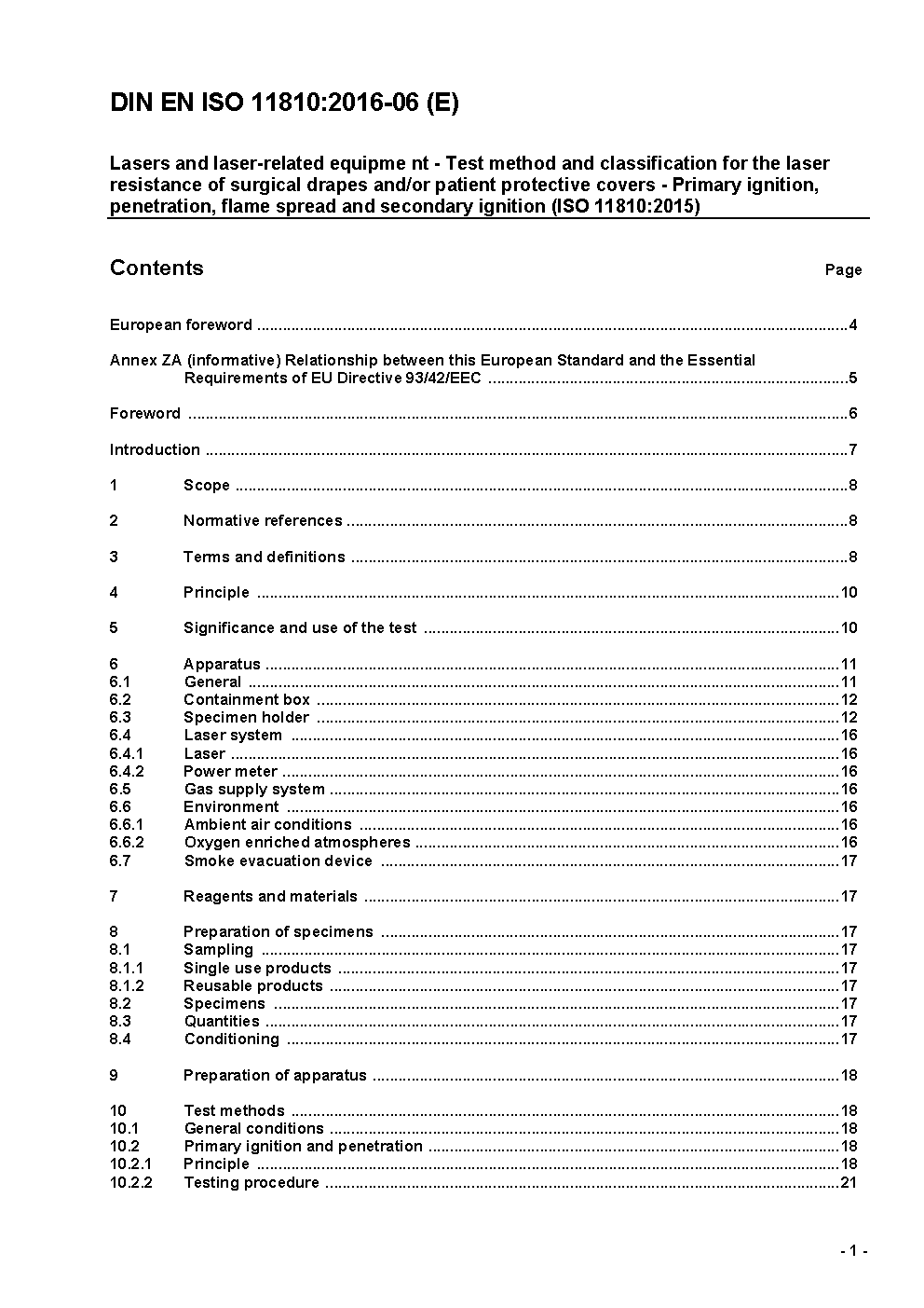 Optics and optical instruments - Lasers and laser-related equipment - Surgical drapes and patient protective covers suitable for use with lasers (ISO 11810:1998); German version prEN ISO 11810:1998