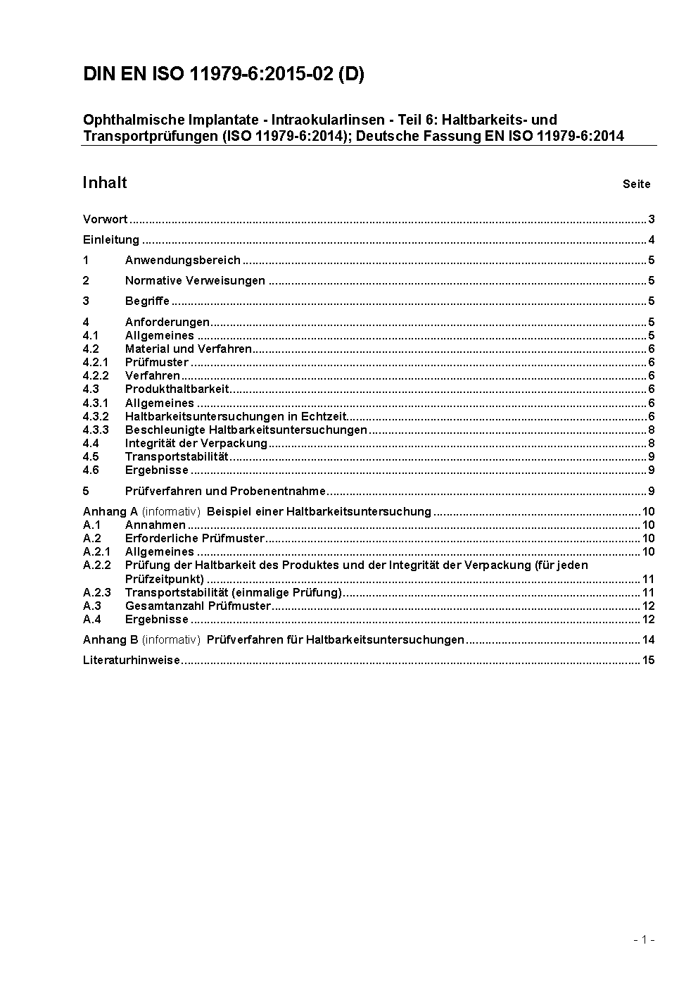 Ophthalmic implants - Intraocular lenses - Part 6: Shelf-life and transport stability (ISO 11979-6:2007); German version EN ISO 11979-6:2007