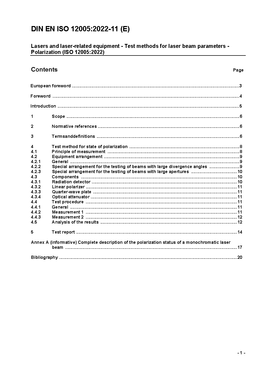 Optics and optical instruments - Lasers and laser related equipment - Test methods for laser beam parameters: Polarization (ISO/DIS 12005:1995); German version prEN ISO 12005:1995