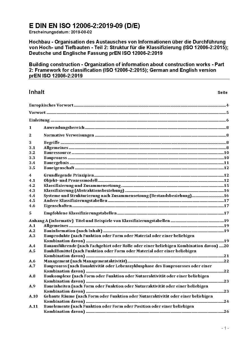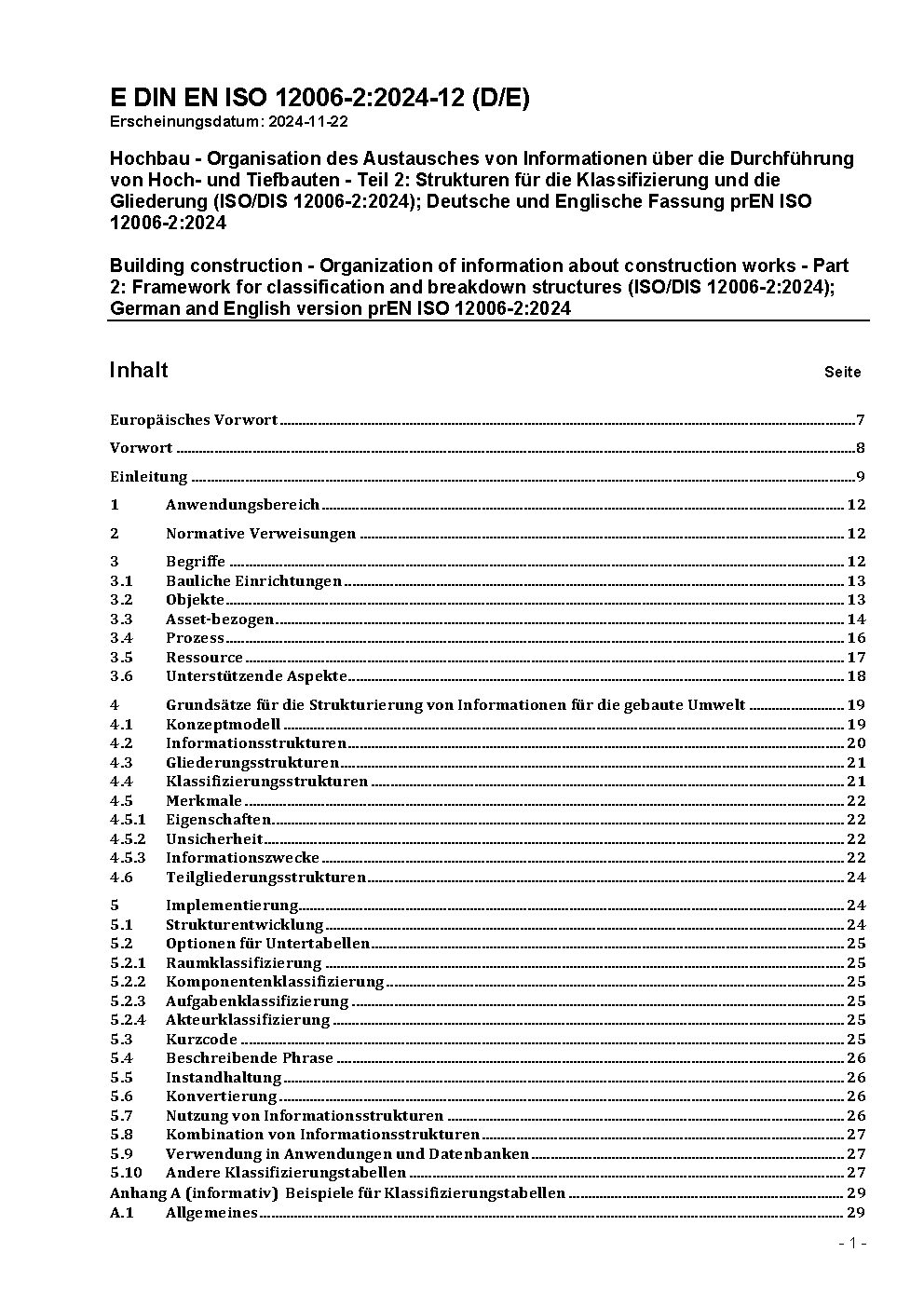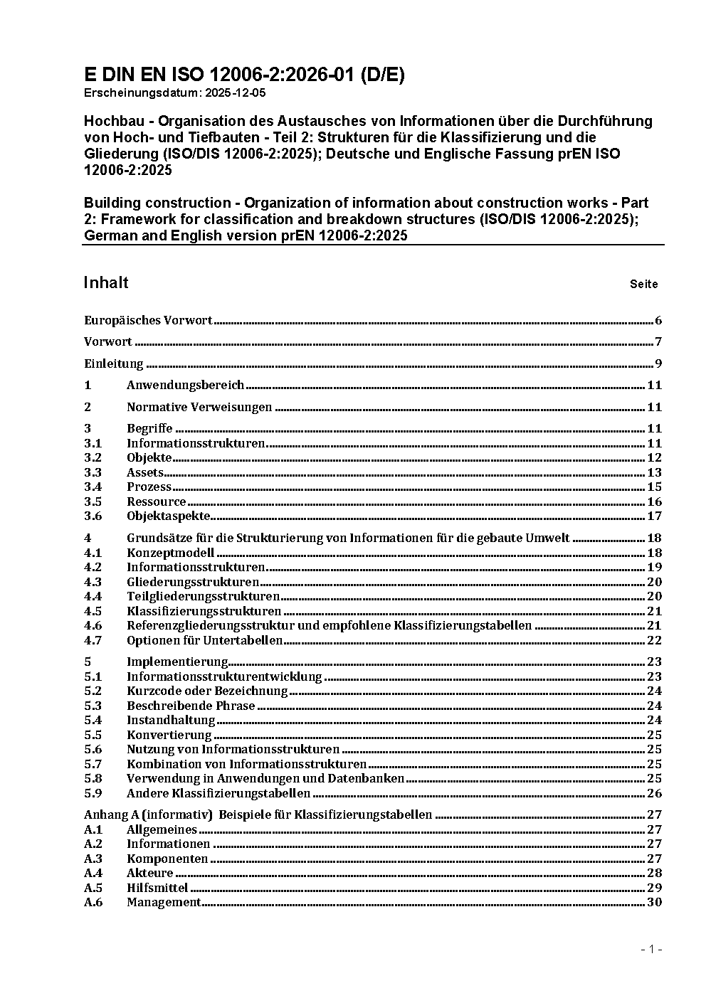 Hochbau - Organisation des Austausches von Informationen über die Durchführung von Hoch- und Tiefbauten - Teil 2: Strukturen für die Klassifizierung und die Gliederung (ISO/DIS 12006-2:2025); Deutsche und Englische Fassung prEN ISO 12006-2:2025