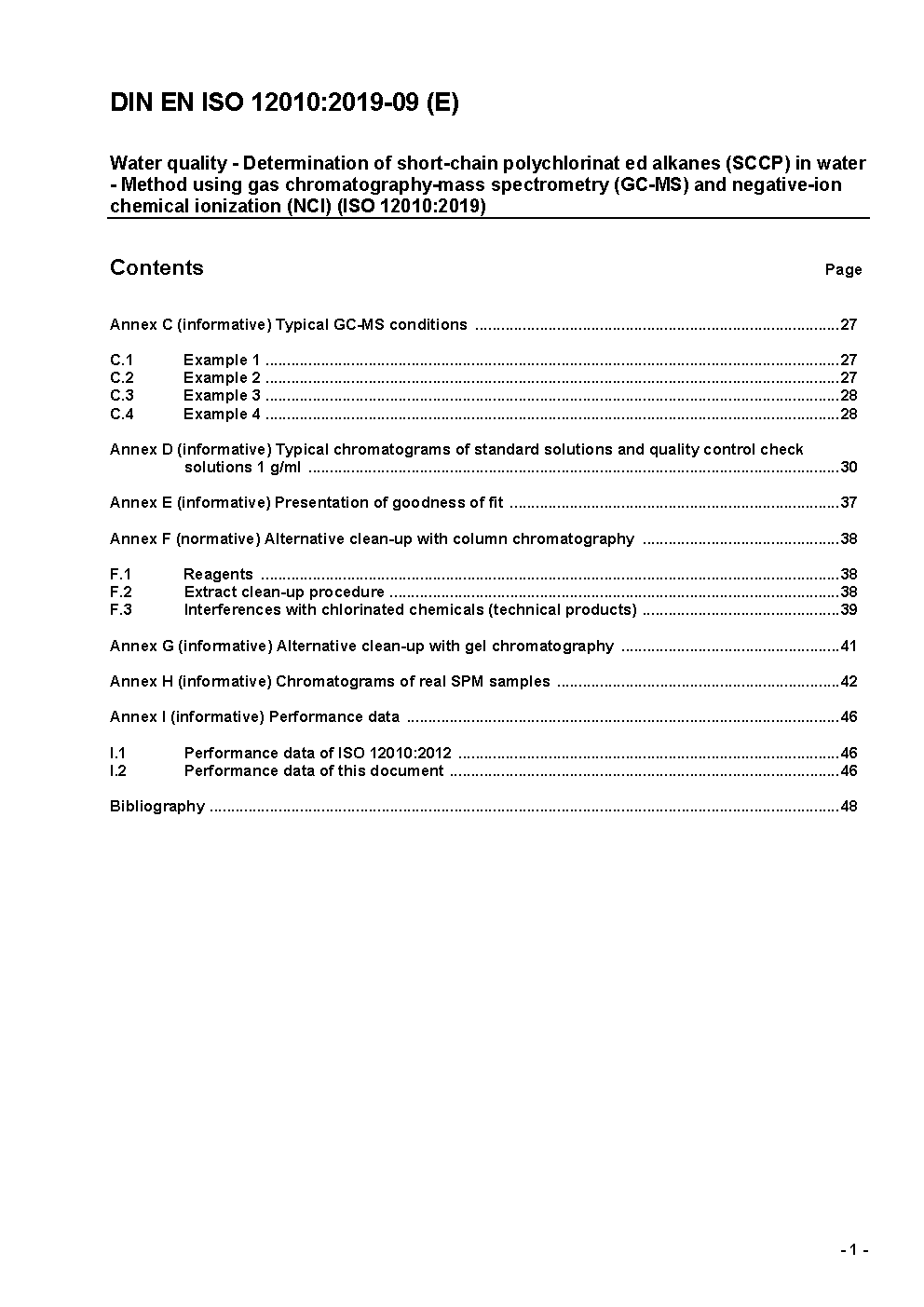 Water quality - Determination of short-chain polychlorinated alkanes (SCCP) in water - Method using gas chromatography-mass spectrometry (GC-MS) and negative-ion chemical ionization (NCI) (ISO/DIS 12010:2018); German and English version prEN ISO 12010:2018