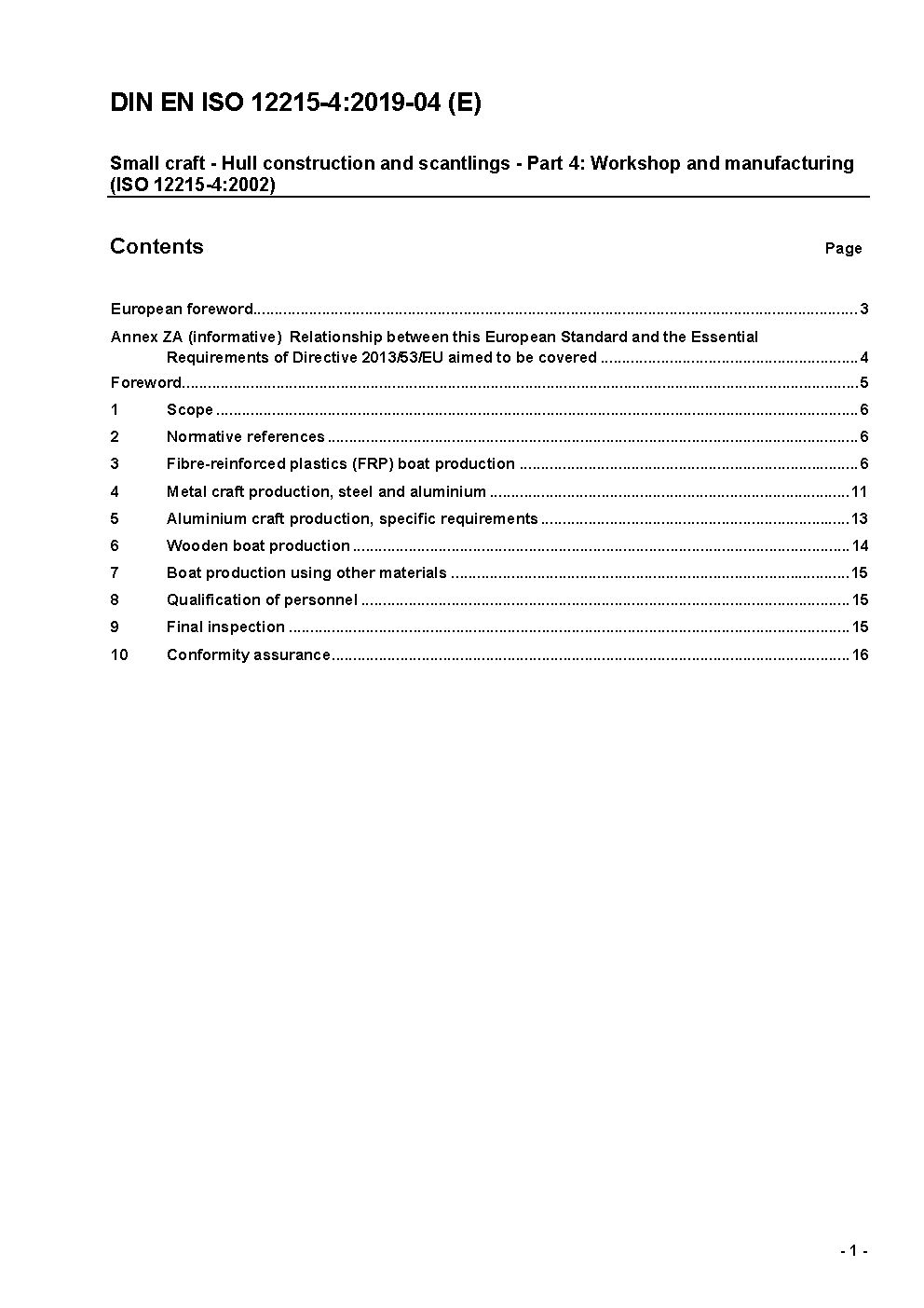 Small craft - Hull construction and scantlings - Part 4: Workshops and manufacturing (ISO 12215-4:2002); German version EN ISO 12215-4:2002