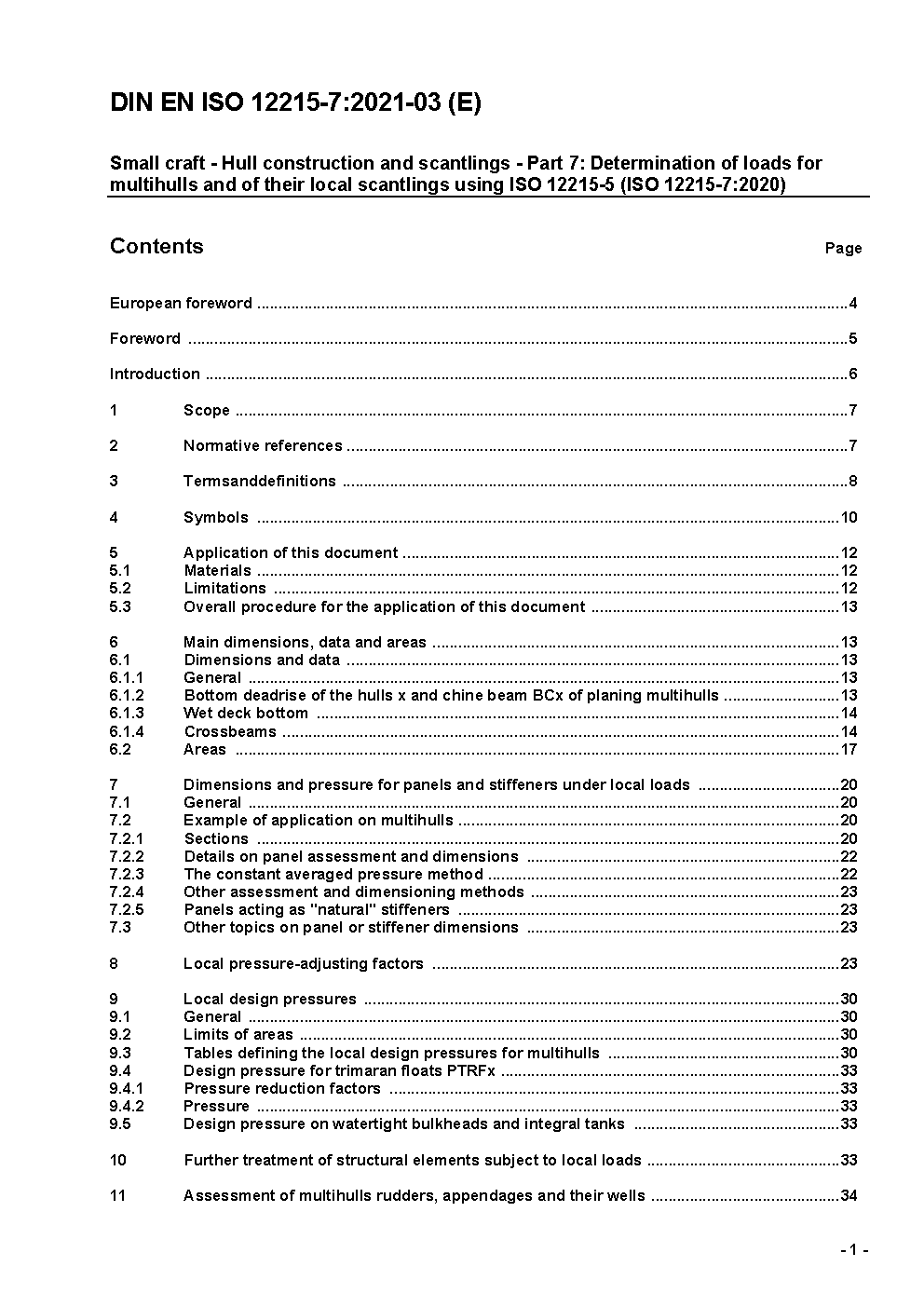 Hull construction - Scantlings - Part 7: Multihulls (ISO/DIS 12215-7:2005); German version prEN ISO 12215-7:2006