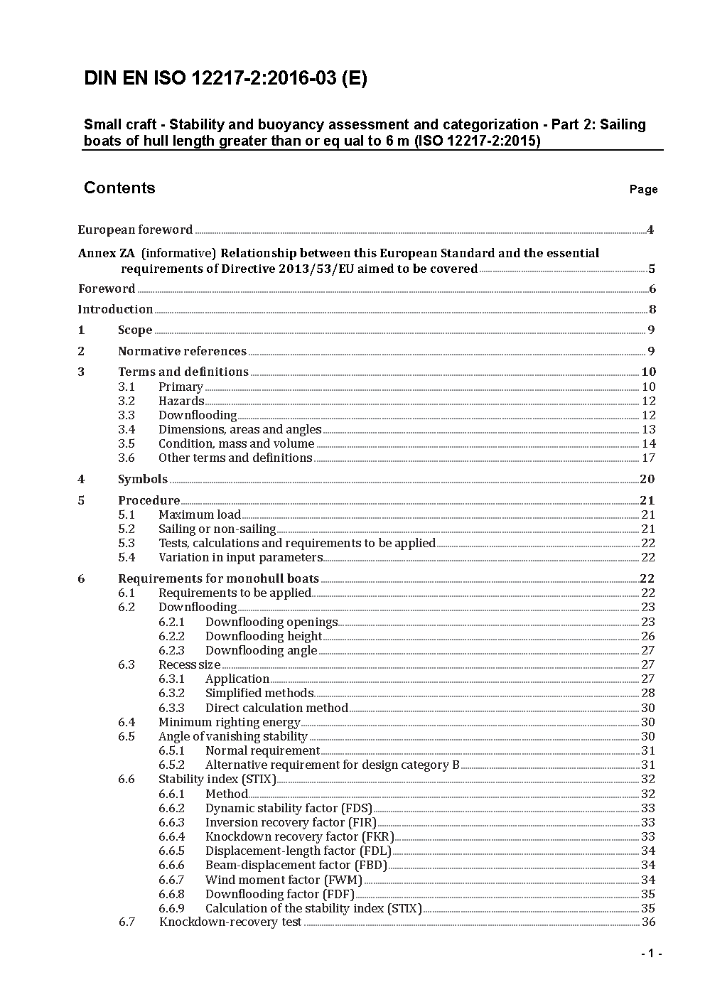 Small craft - Stability and buoyancy assessment and categorization - Part 2: Sailing boats of hull length greater than or equal to 6 m (ISO 12217-2:2015); German version EN ISO 12217-2:2017; Amendment A100