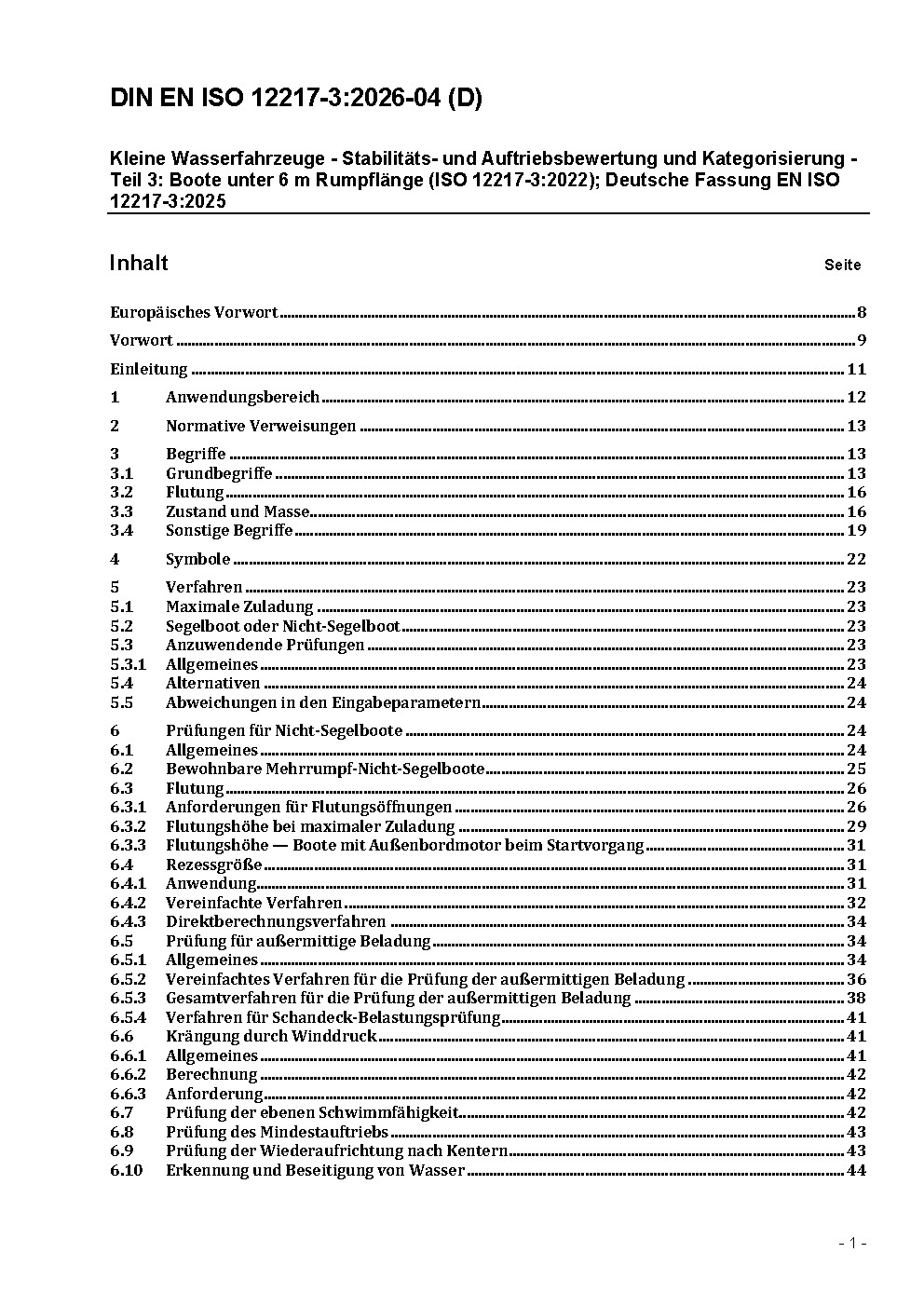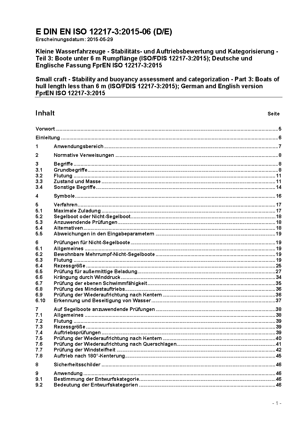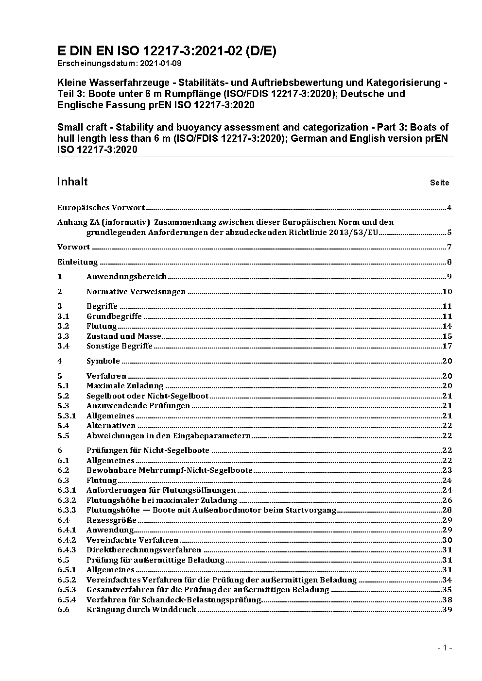 Small craft - Stability and buoyancy assessment and categorization - Part 3: Boats of hull length less than 6 m (ISO/FDIS 12217-3:2020); German and English version prEN ISO 12217-3:2020
