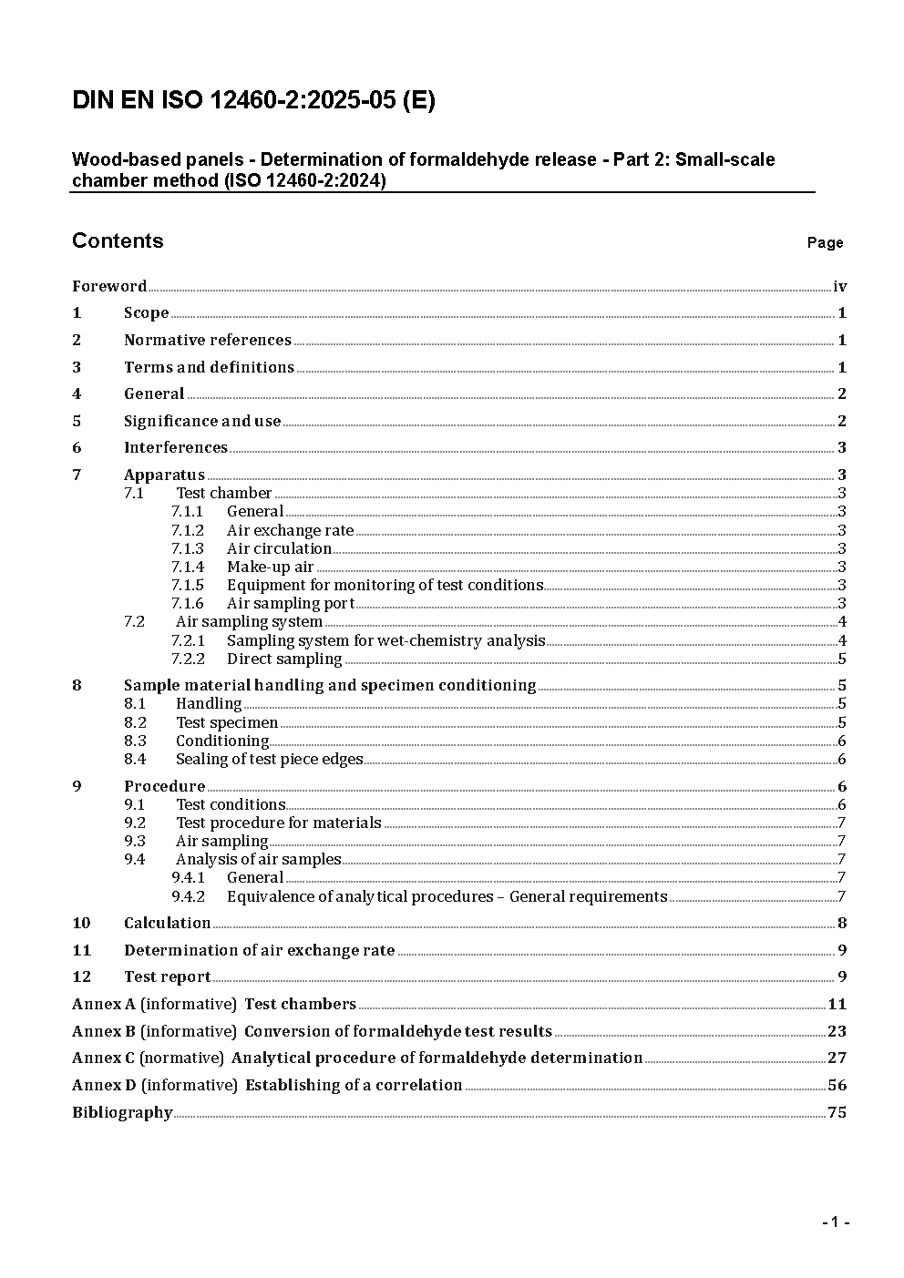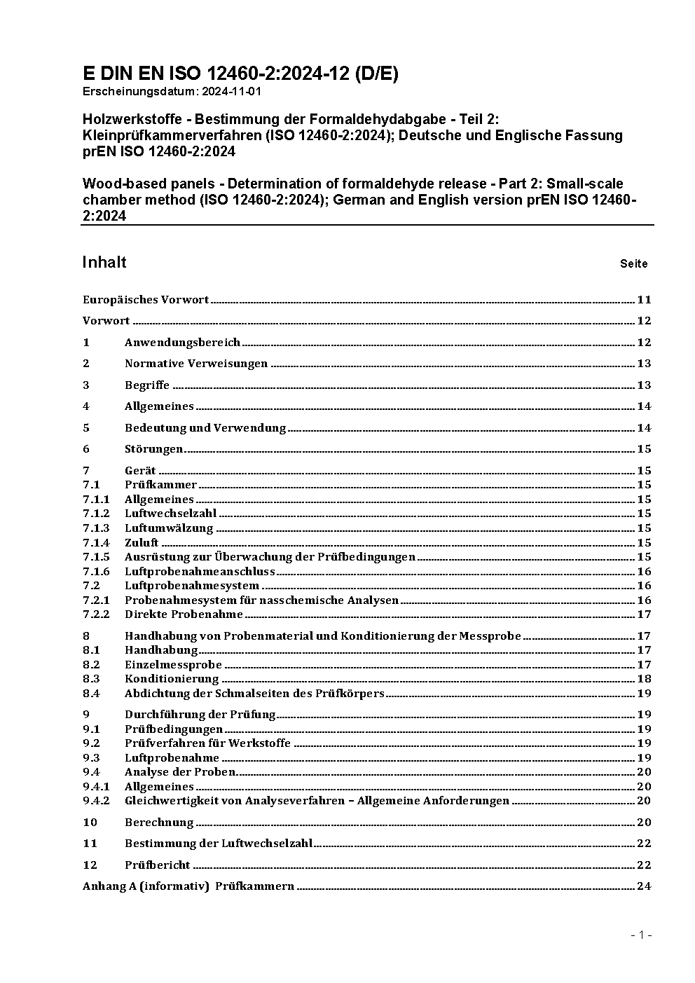 Wood-based panels - Determination of formaldehyde release - Part 2: Small-scale chamber method (ISO 12460-2:2024); German and English version prEN ISO 12460-2:2024