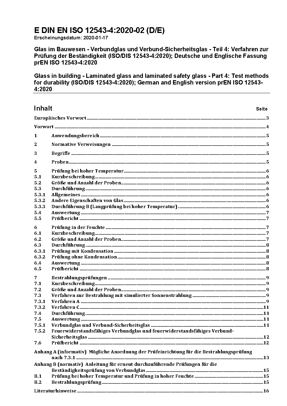 Glas im Bauwesen - Verbundglas und Verbund-Sicherheitsglas - Teil 4: Verfahren zur Prüfung der Beständigkeit (ISO 12543-4:2021); Deutsche Fassung EN ISO 12543-4:2021