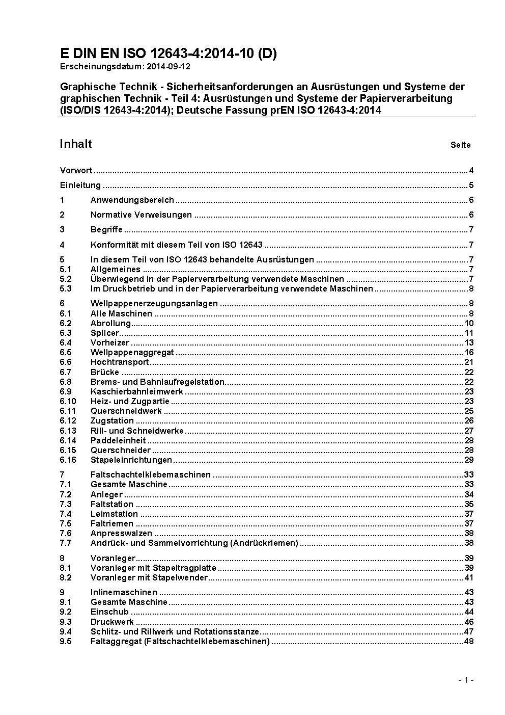 Graphische Technik - Sicherheitsanforderungen an Ausrüstungen und Systeme der graphischen Technik - Teil 4: Ausrüstungen und Systeme der Papierverarbeitung (ISO/DIS 12643-4:2014); Deutsche Fassung prEN ISO 12643-4:2014