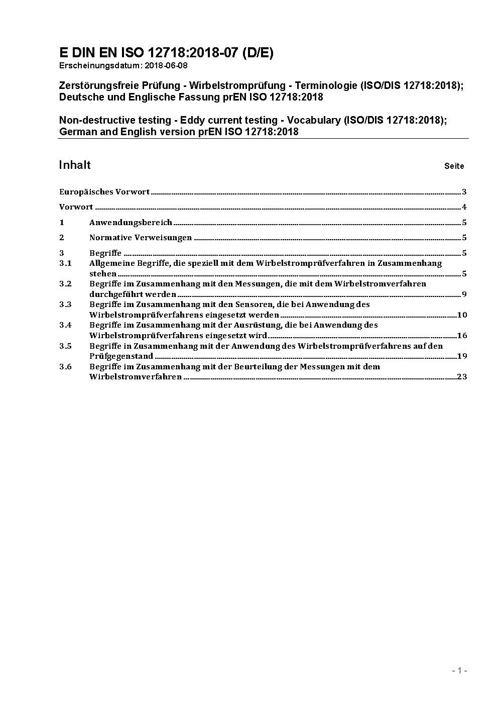 Zerstörungsfreie Prüfung - Wirbelstromprüfung - Terminologie (ISO/DIS 12718:2018); Deutsche und Englische Fassung prEN ISO 12718:2018
