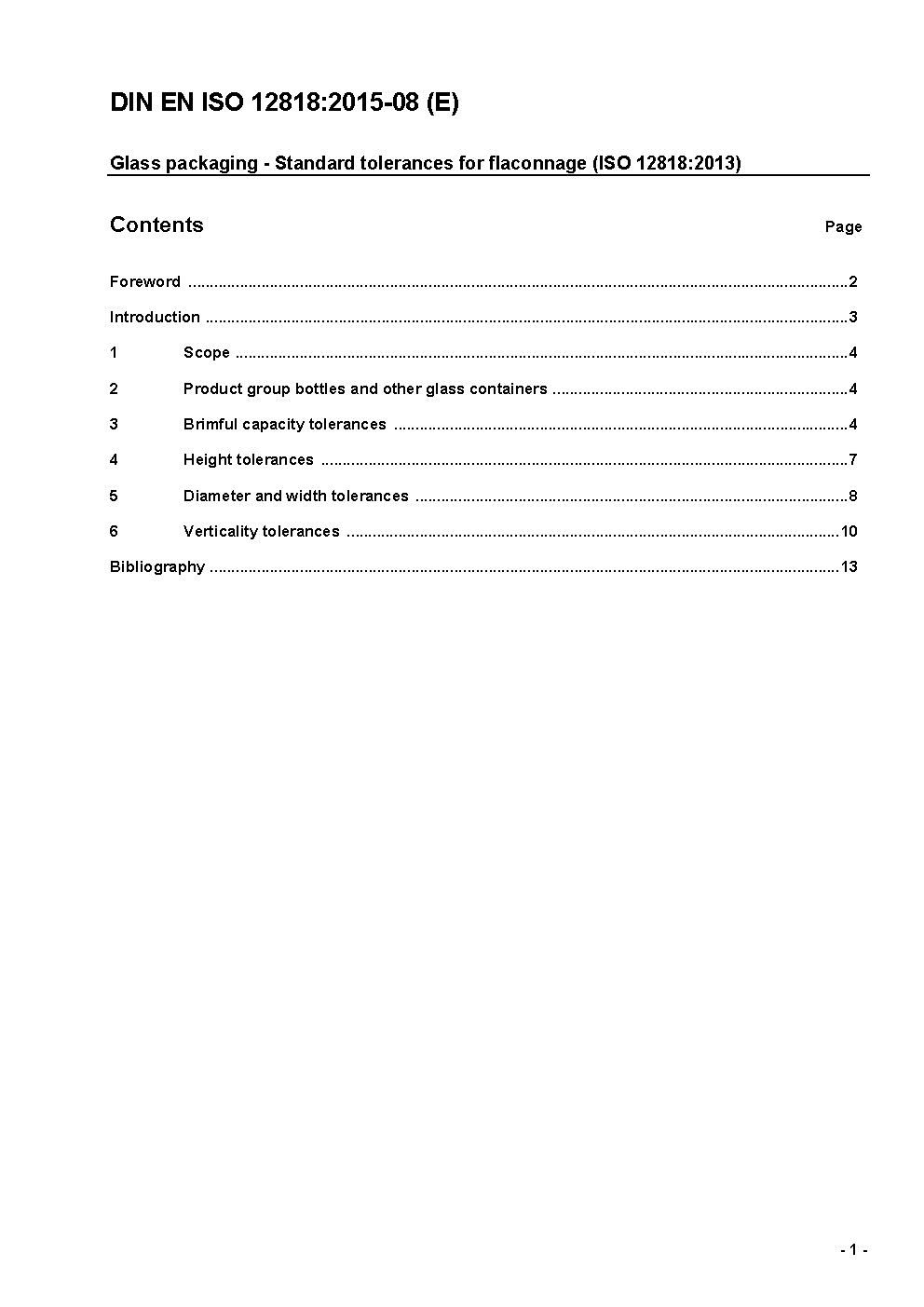 Glass packaging - Standard tolerances for flaconnage (ISO 12818:2013); German version EN ISO 12818:2015