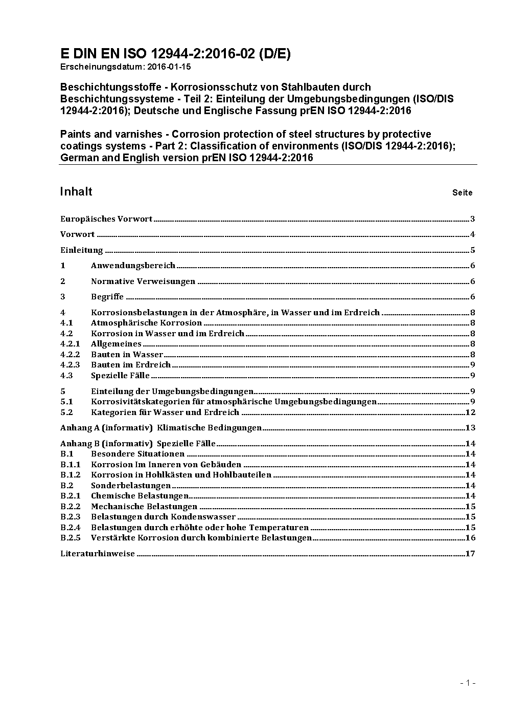 Beschichtungsstoffe - Korrosionsschutz von Stahlbauten durch Beschichtungssysteme - Teil 2: Einteilung der Umgebungsbedingungen (ISO 12944-2:2017); Deutsche Fassung EN ISO 12944-2:2017