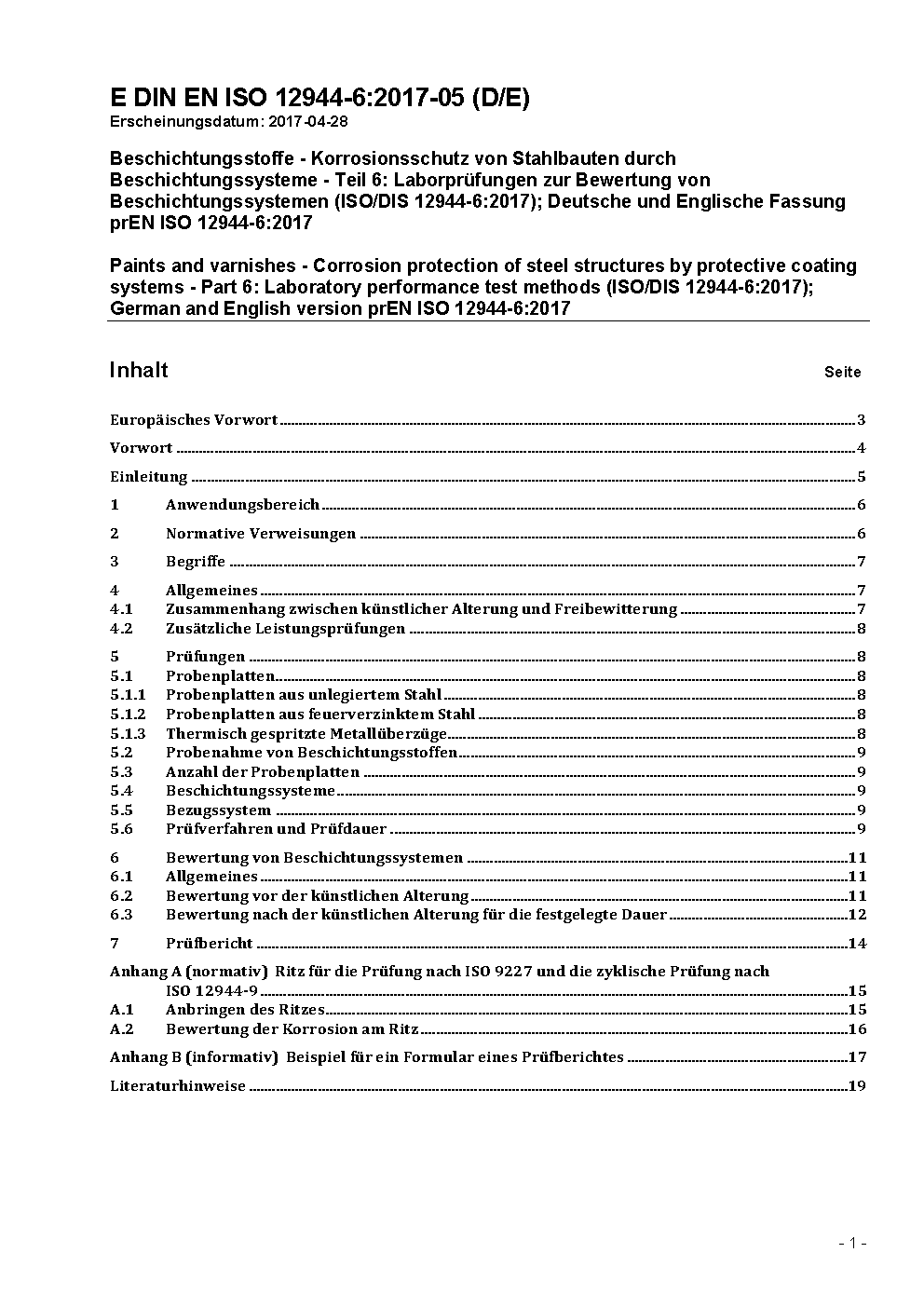 Beschichtungsstoffe - Korrosionsschutz von Stahlbauten durch Beschichtungssysteme - Teil 6: Laborprüfungen zur Bewertung von Beschichtungssystemen (ISO 12944-6:1998); Deutsche Fassung EN ISO 12944-6:1998
