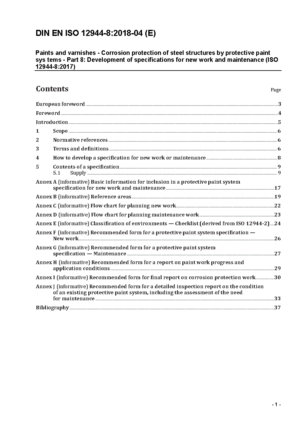 Paints and varnishes - Corrosion protection of steel structures by protective paint systems - Part 8: Development of specifications for new work and maintenance (ISO 12944-8:1998); German version EN ISO 12944-8:1998