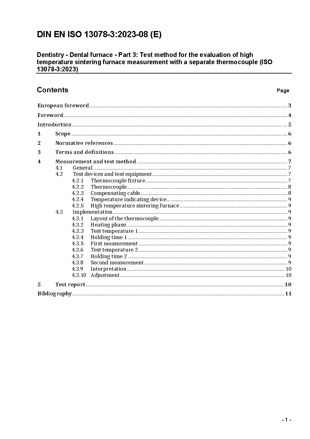 Dentistry - Dental furnace - Part 3: Test method for the evaluation of high temperature sintering furnace measurement with a separate thermocouple (ISO 13078-3:2023); German version EN ISO 13078-3:2023