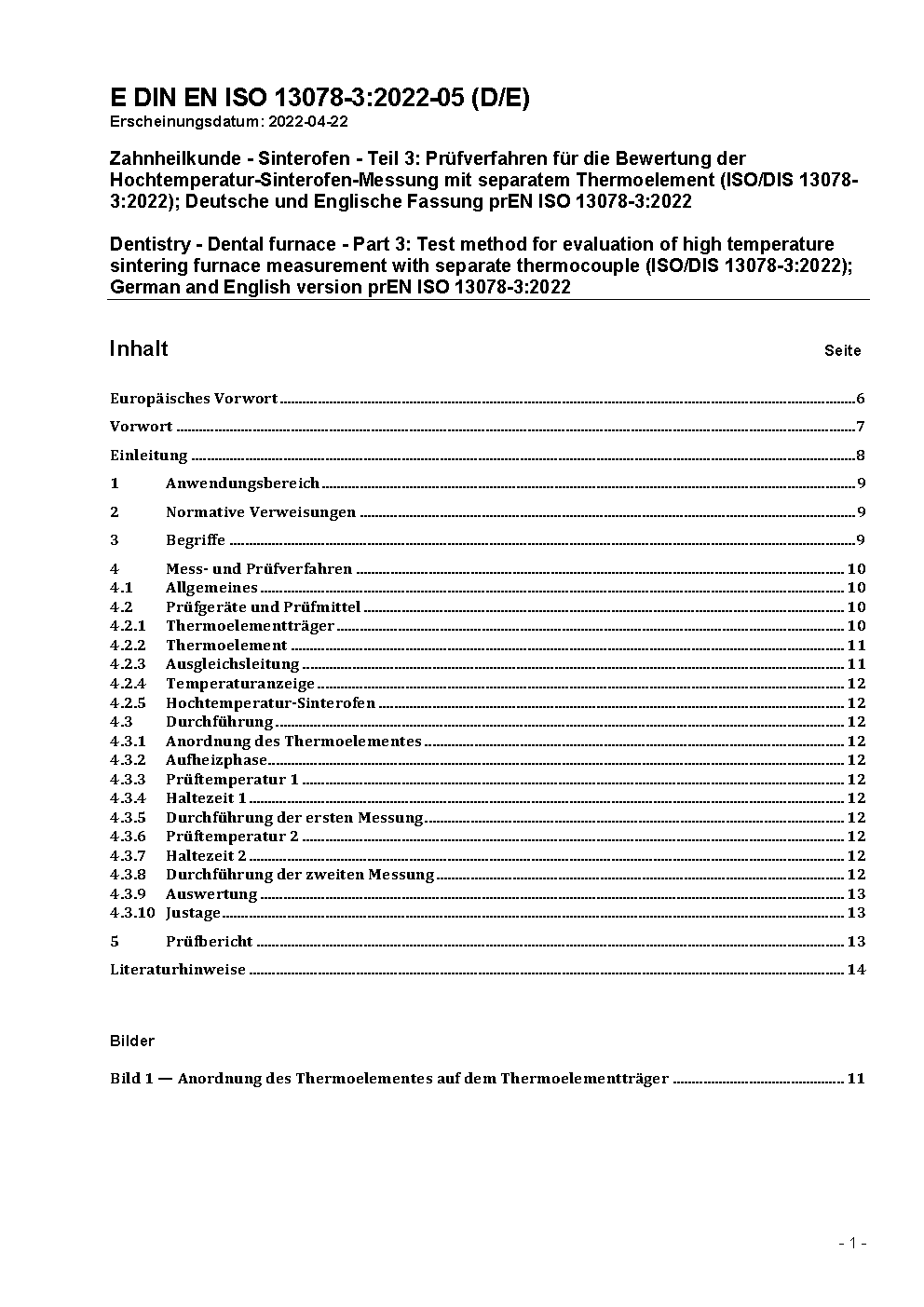Zahnheilkunde - Sinterofen - Teil 3: Prüfverfahren für die Bewertung der Hochtemperatur-Sinterofen-Messung mit separatem Thermoelement (ISO 13078-3:2023); Deutsche Fassung EN ISO 13078-3:2023