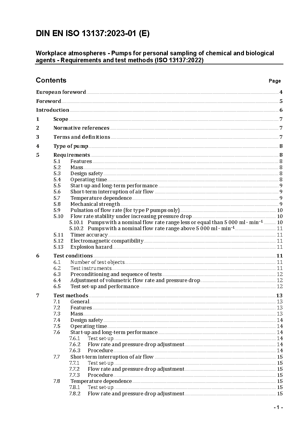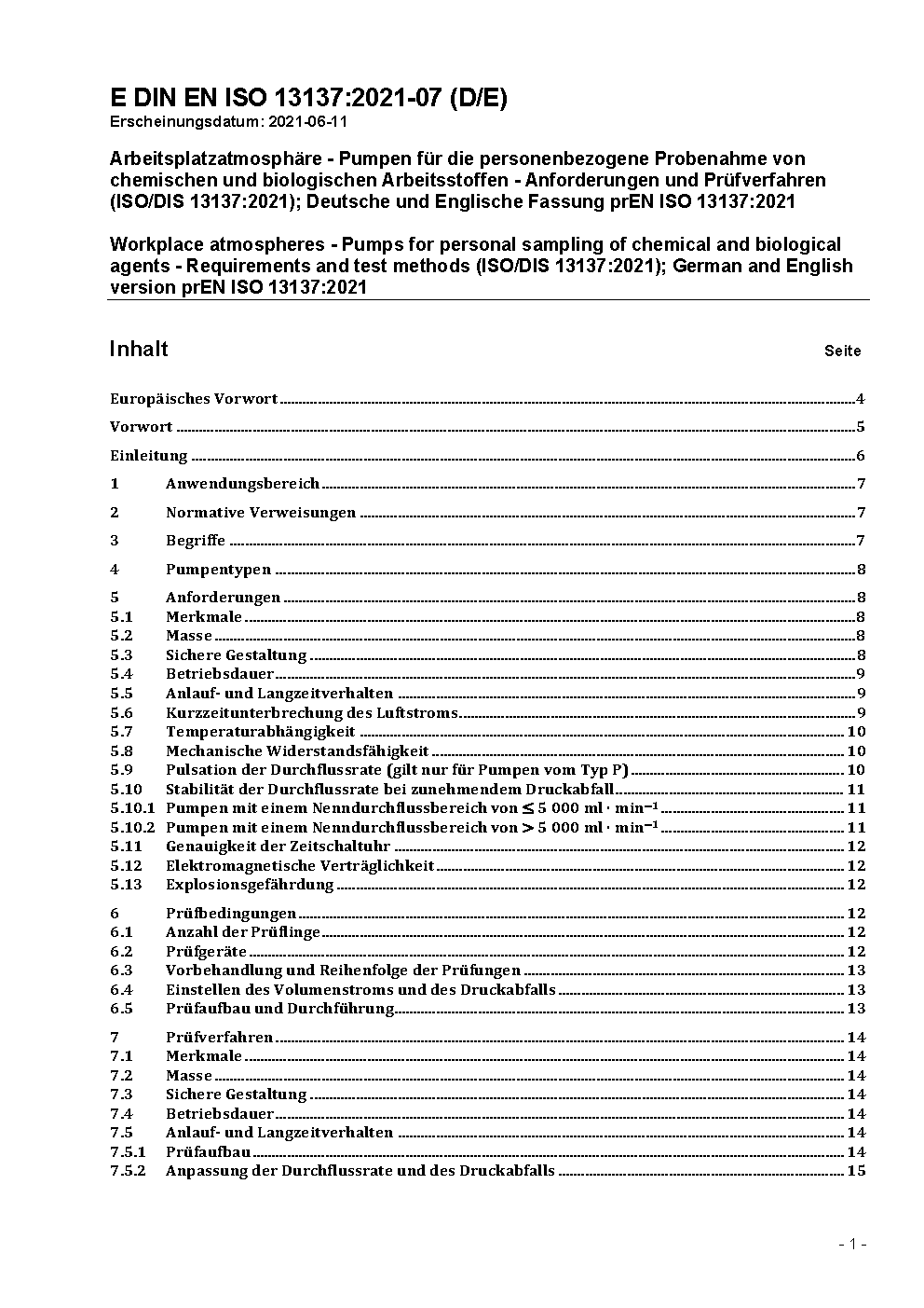 Workplace atmospheres - Pumps for personal sampling of chemical and biological agents - Requirements and test methods (ISO 13137:2013); German version EN ISO 13137:2013