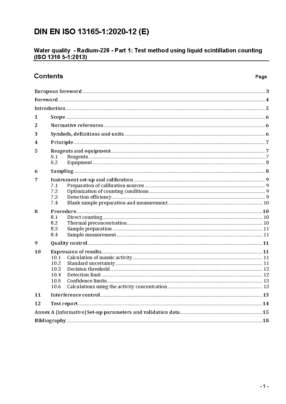Water quality - Radium-226 - Part 1: Test method using liquid scintillation counting (ISO 13165-1:2022); German and English version prEN ISO 13165-1:2023