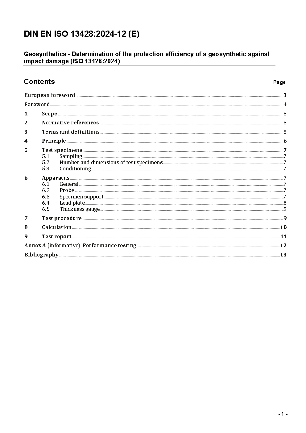 Geosynthetics - Determination of the protection efficiency of a geosynthetic against impact damage (ISO/DIS 13428:2023); German and English version prEN ISO 13428:2023