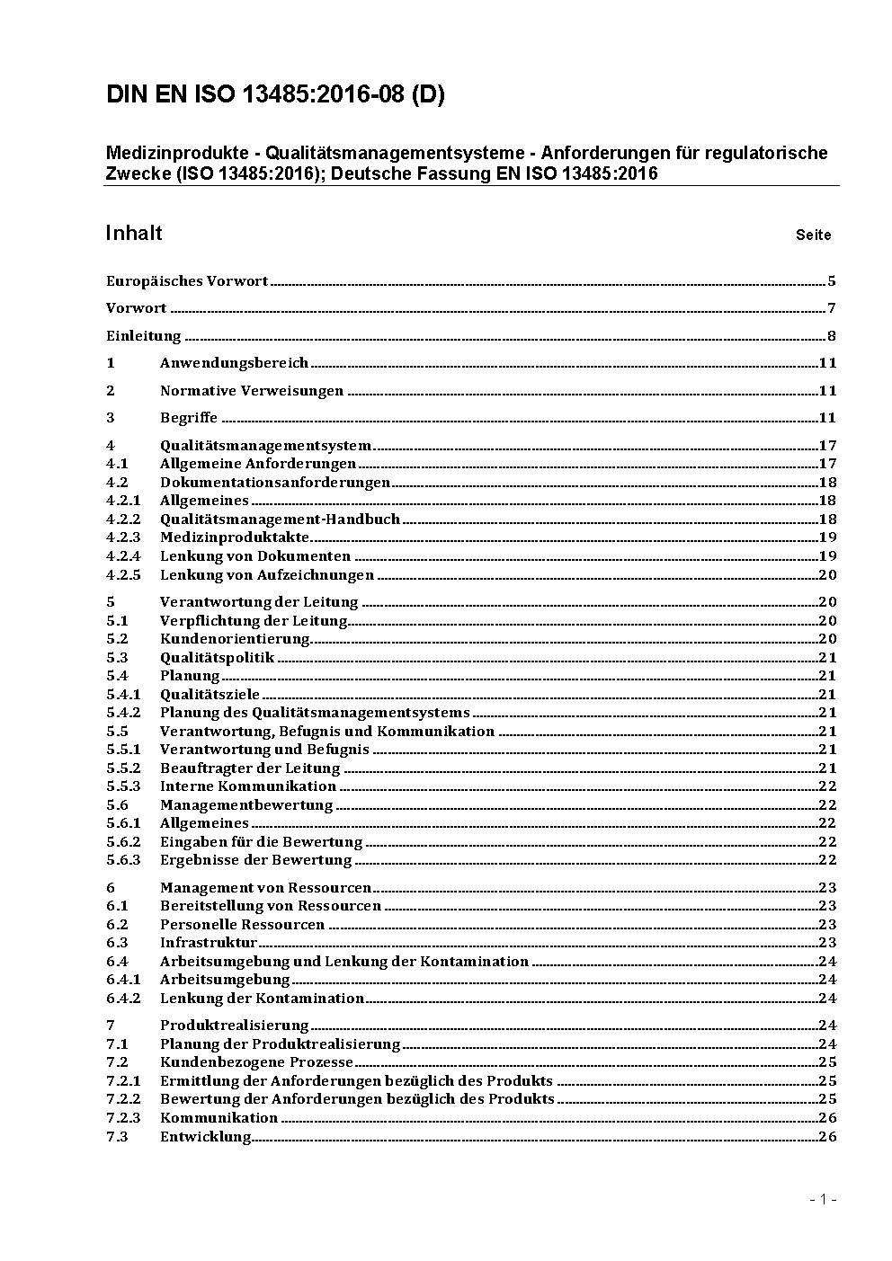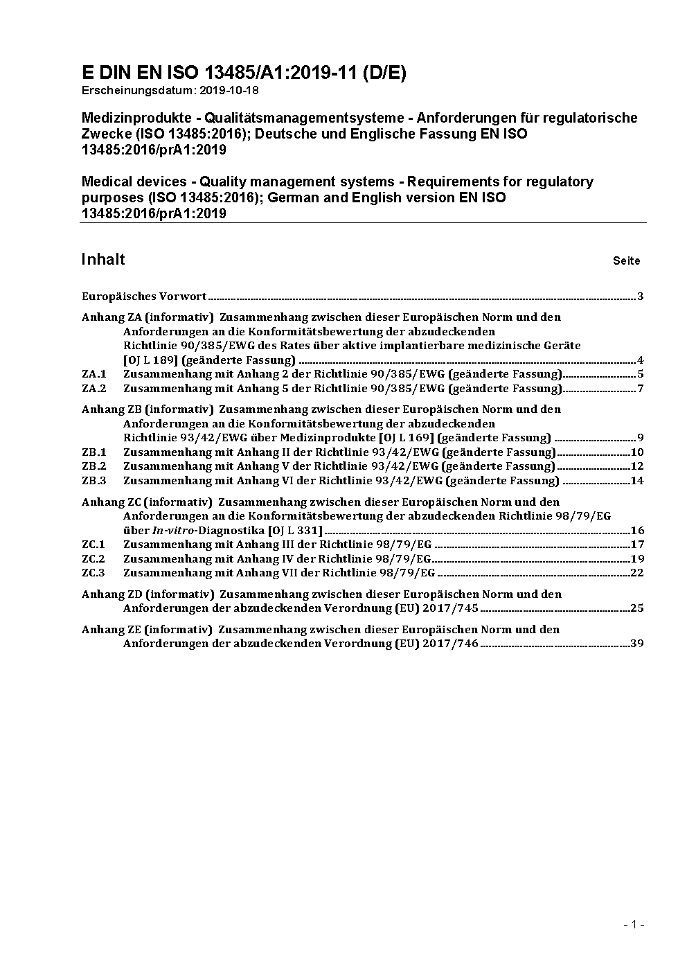 A transition period, as set out in DIN EN ISO 13485 (2016-08), exists until 2019-03-31.