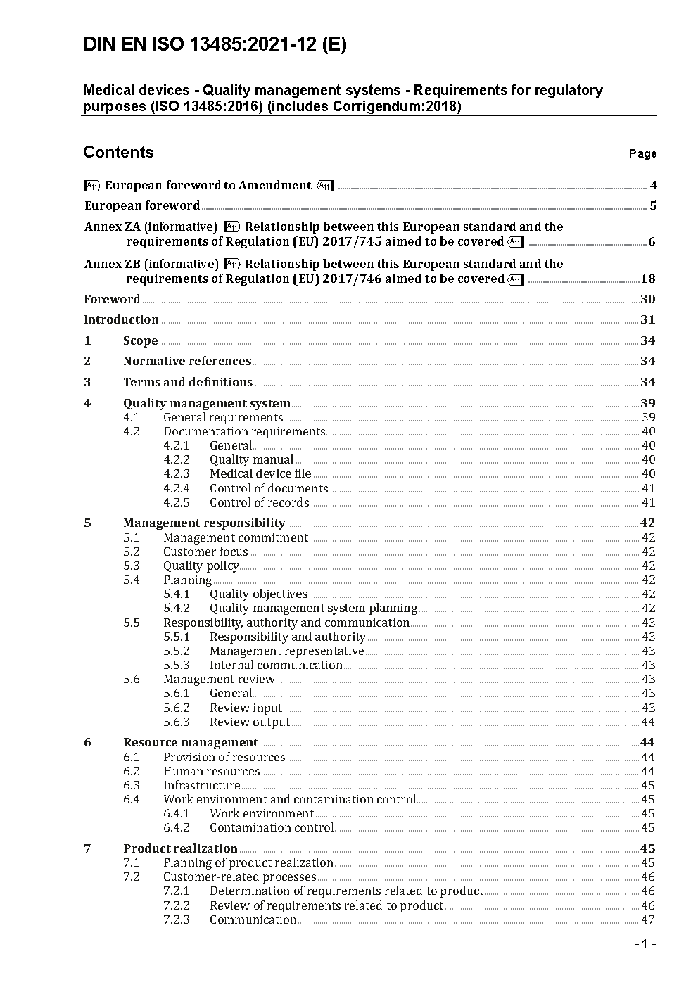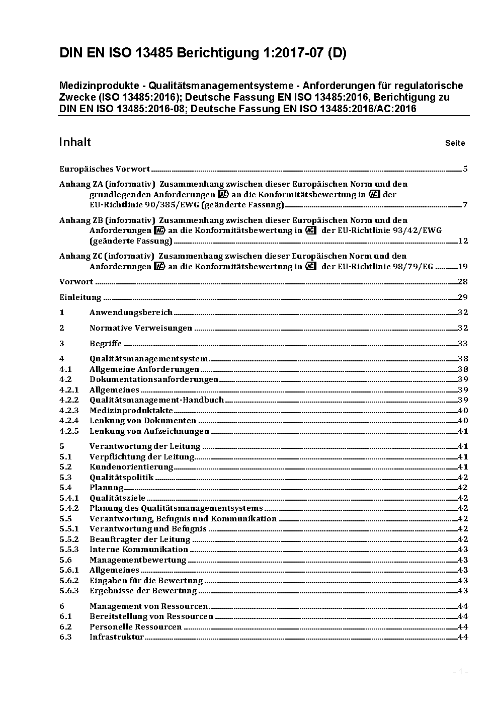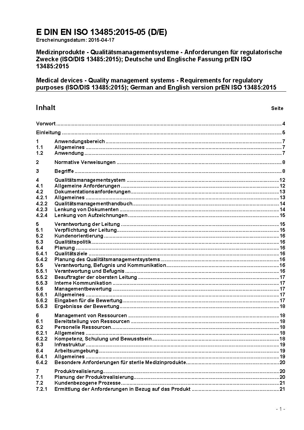 Medizinprodukte - Qualitätsmanagementsysteme - Anforderungen für regulatorische Zwecke (ISO 13485:2003 + Cor. 1:2009); Deutsche Fassung EN ISO 13485:2012 + AC:2012 / Achtung: Übergangsfrist, festgelegt durch DIN EN ISO 13485 (2016-08), bis 2019-03-31 beachten.