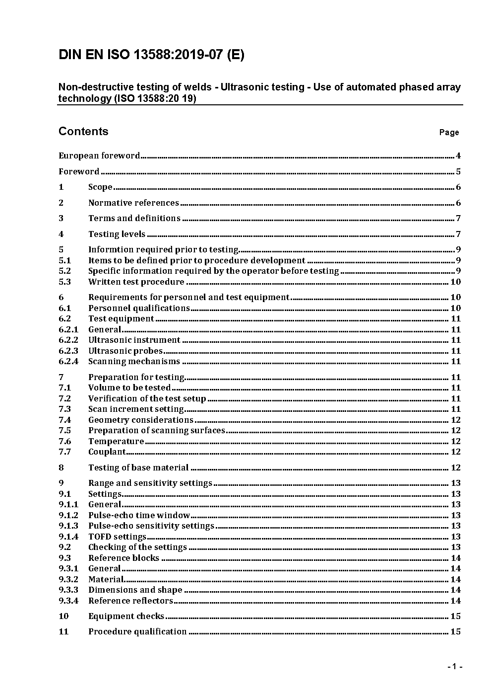 Non-destructive testing of welds - Ultrasonic testing - Use of automated phased array technology (ISO/DIS 13588:2018); German and English version prEN ISO 13588:2018