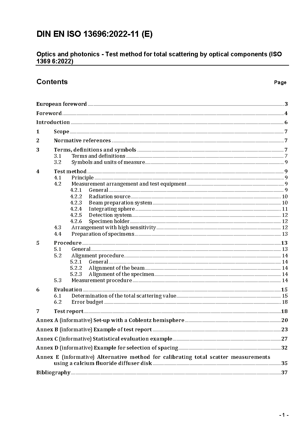 Optics and optical instruments - Test methods for radiation scattered by optical components (ISO 13696:2002); German version EN ISO 13696:2002