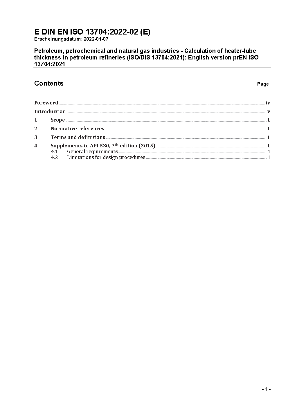 Petroleum, petrochemical and natural gas industries - Calculation of heater-tube thickness in petroleum refineries (ISO 13704:2022): English version EN ISO 13704:2022