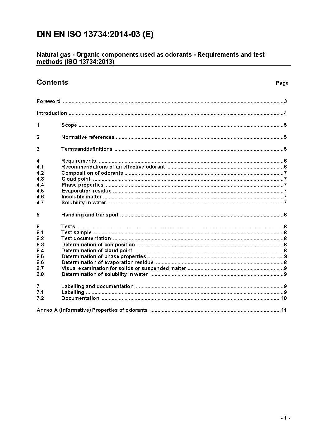 Natural gas - Organic sulfur compounds used as odorants - Requirements and test method (ISO 13734:1998); German version EN ISO 13734:2000