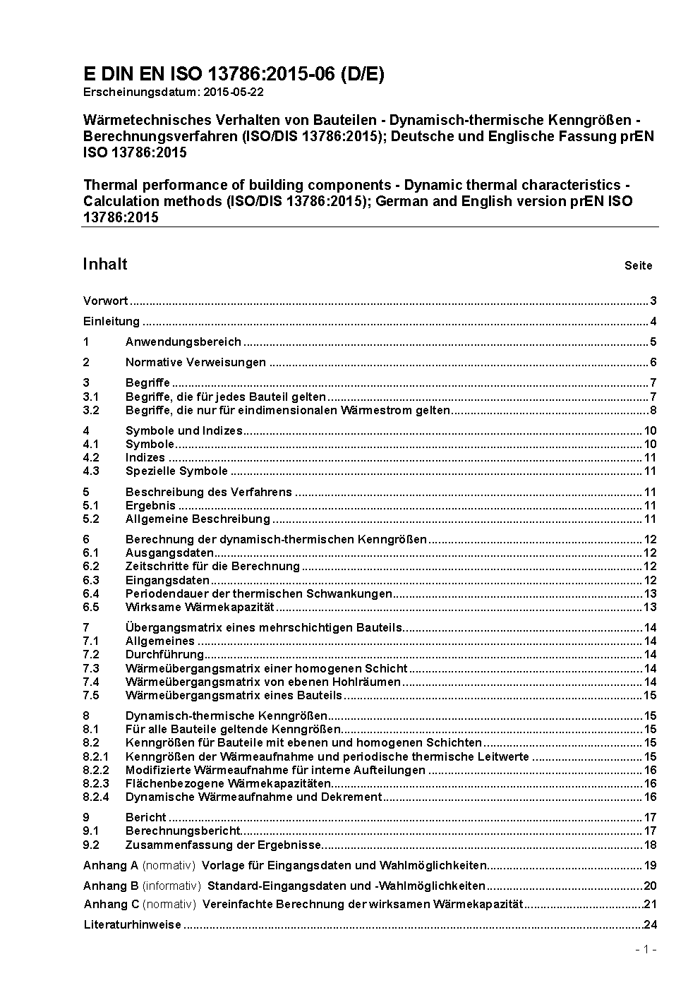 Wärmetechnisches Verhalten von Bauteilen - Dynamisch-thermische Kenngrößen - Berechnungsverfahren (ISO 13786:2007); Deutsche Fassung EN ISO 13786:2007