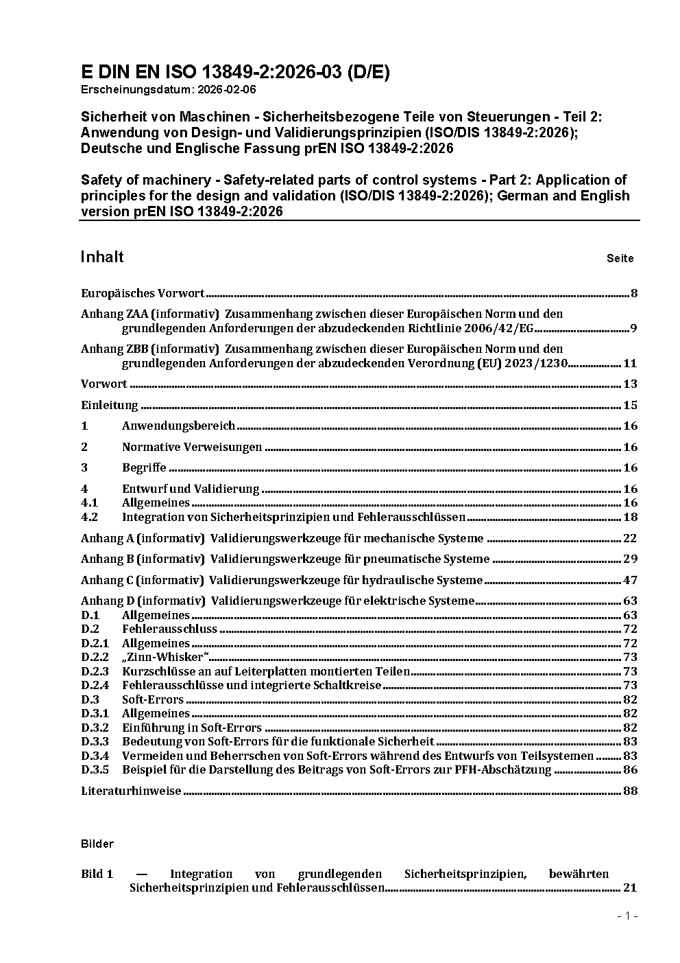 Sicherheit von Maschinen - Sicherheitsbezogene Teile von Steuerungen - Teil 2: Anwendung von Design- und Validierungsprinzipien (ISO/DIS 13849-2:2026); Deutsche und Englische Fassung prEN ISO 13849-2:2026