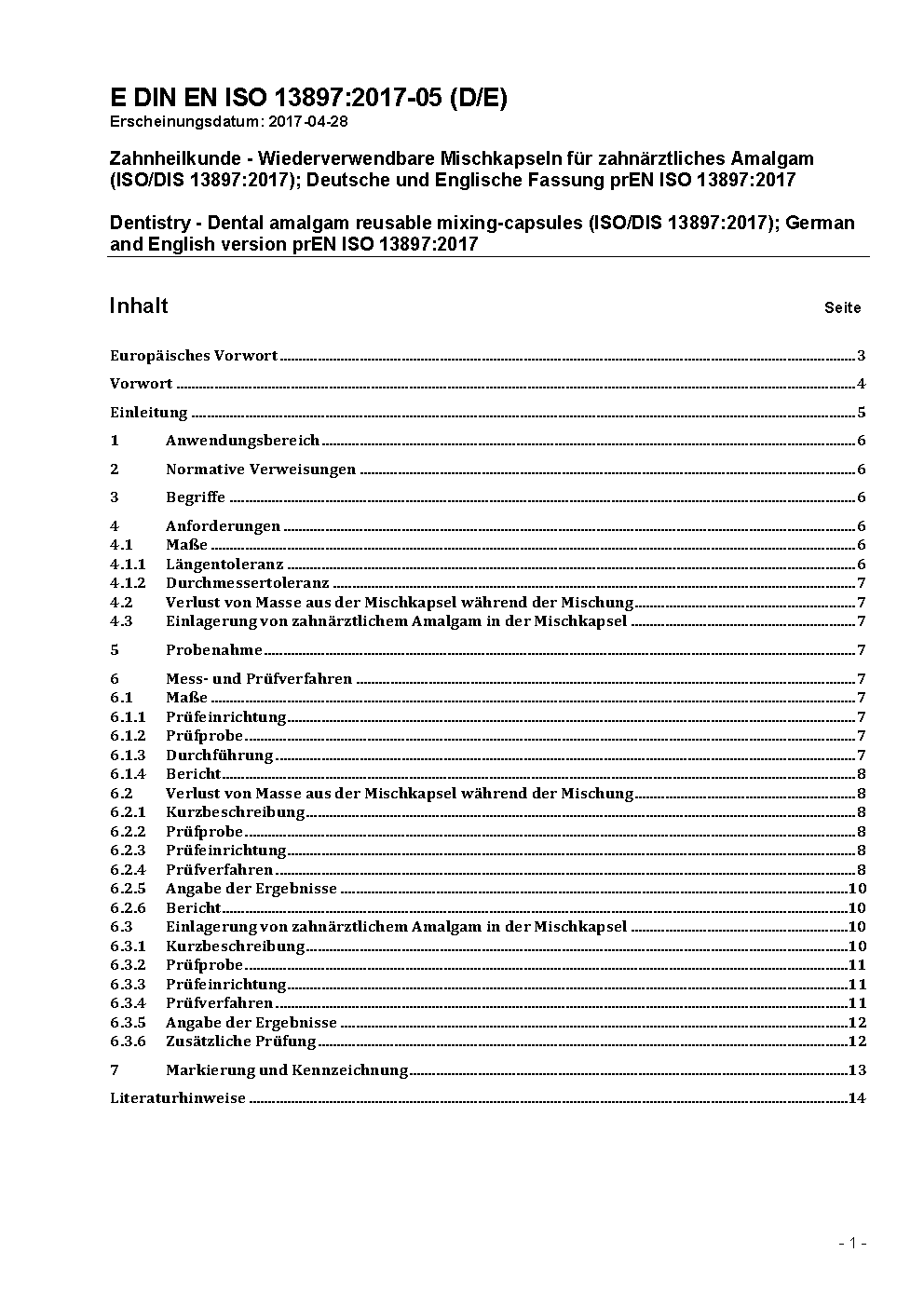 Dentistry - Amalgam capsules (ISO 13897:2003); German version EN 13897:2004