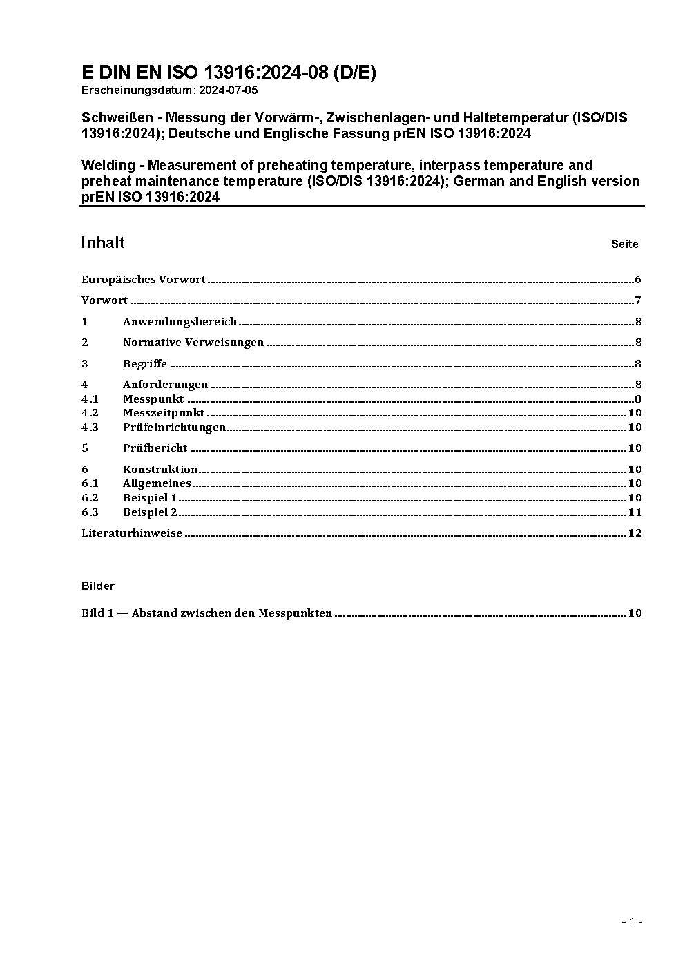 Schweißen - Anleitung zur Messung der Vorwärm-, Zwischenlagen- und Haltetemperatur (ISO 13916:1996); Deutsche Fassung EN ISO 13916:1996