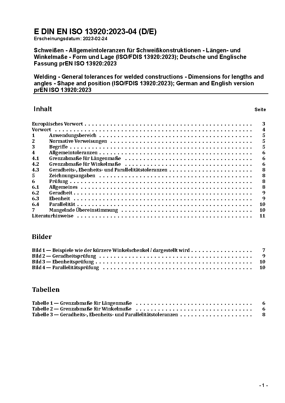 Schweißen - Allgemeintoleranzen für Schweißkonstruktionen - Längen- und Winkelmaße, Form und Lage (ISO 13920:2023); Deutsche Fassung EN ISO 13920:2023