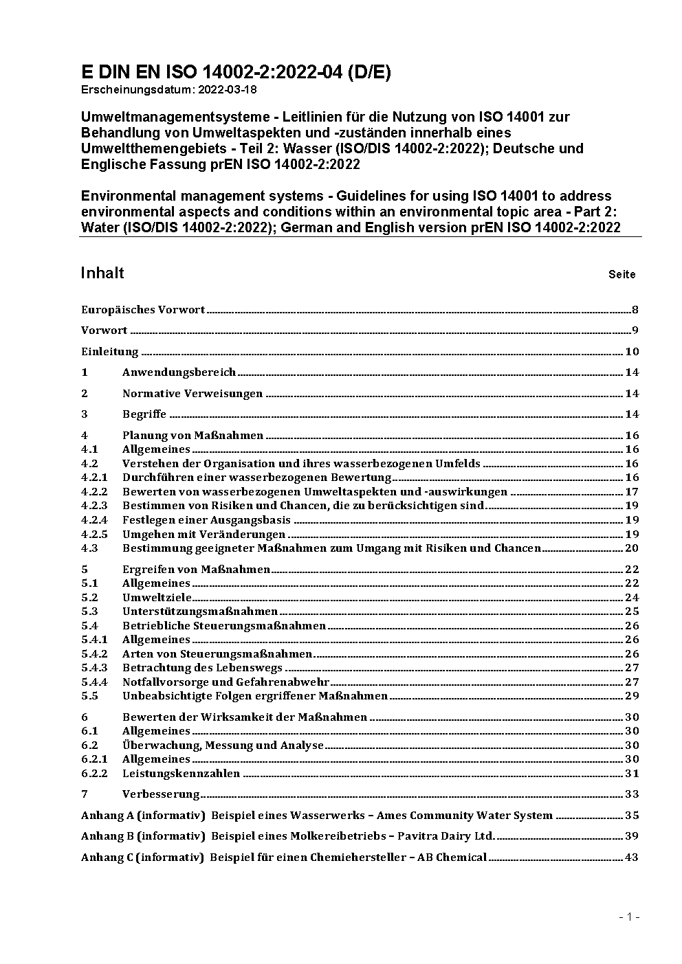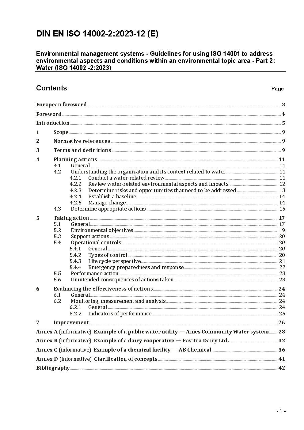 Umweltmanagementsysteme - Leitlinien für die Nutzung von ISO 14001 zur Behandlung von Umweltaspekten und -zuständen innerhalb eines Umweltthemengebiets - Teil 2: Wasser (ISO 14002-2:2023); Deutsche Fassung EN ISO 14002-2:2023