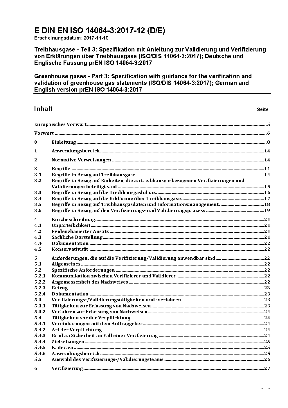 Greenhouse gases - Part 3: Specification with guidance for the validation and verification of greenhouse gas assertions (ISO 14064-3:2006); German version FprEN ISO 14064-3:2011