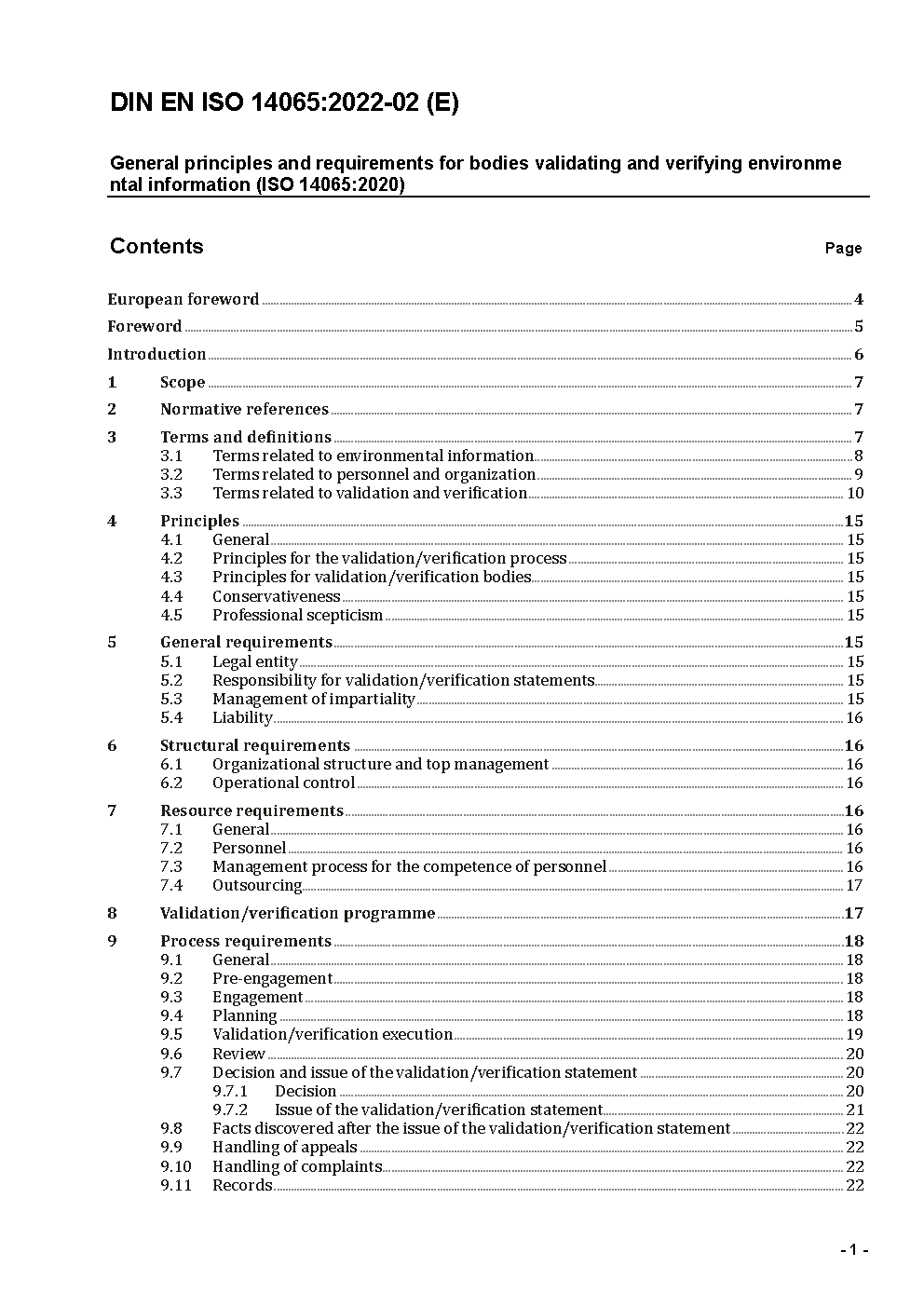 Allgemeine Grundsätze und Anforderungen an Validierungs- und Verifizierungsstellen von Umweltinformationen (ISO 14065:2020); Deutsche Fassung EN ISO 14065:2021
