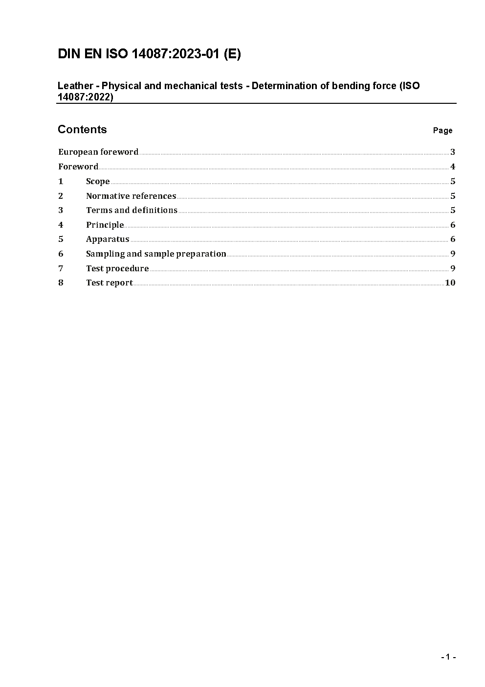 Leather - Physical and mechanical tests - Determination of bending force (ISO 14087:2011); German version EN ISO 14087:2011