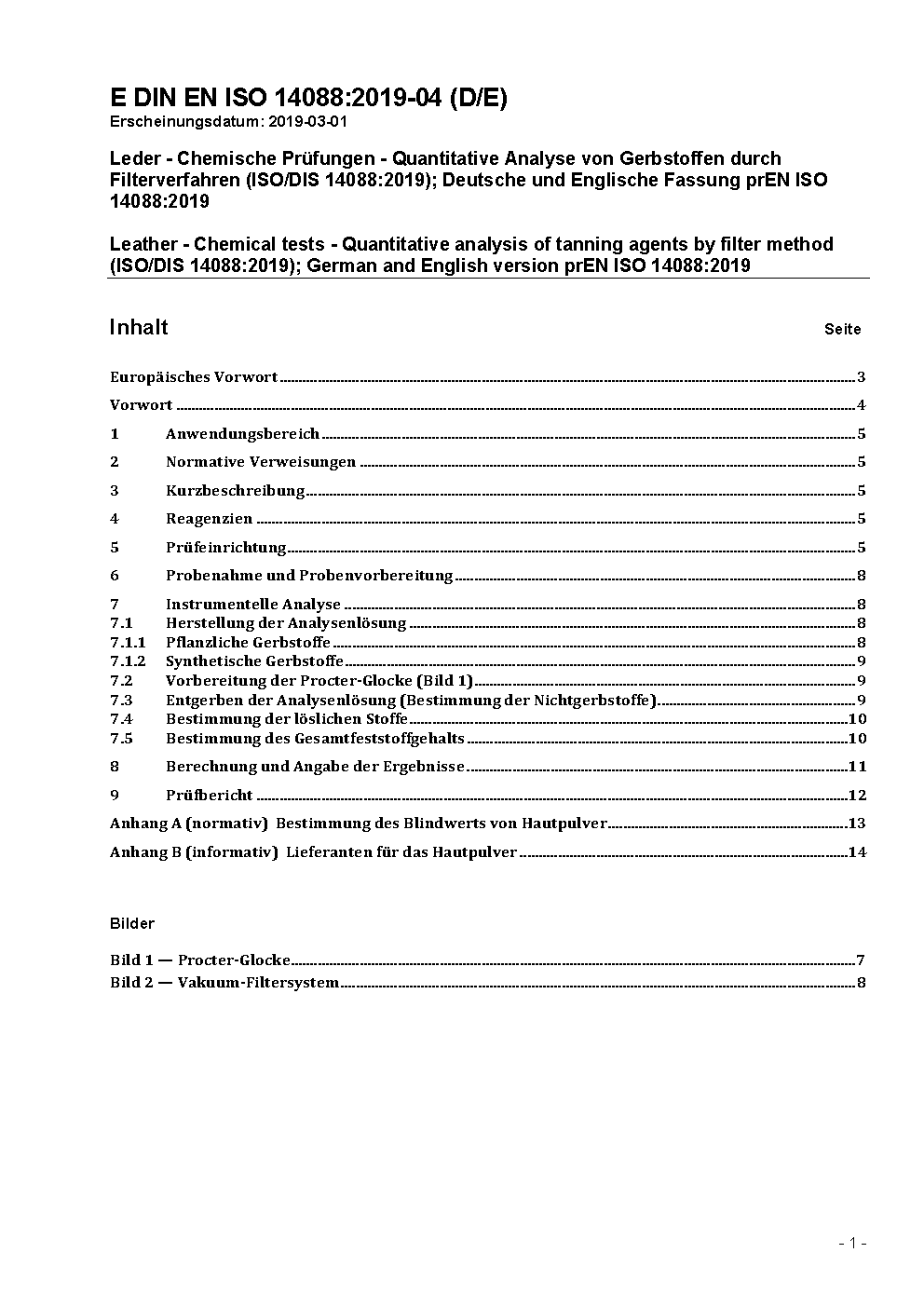 Leder - Chemische Prüfungen - Quantitative Analyse von Gerbstoffen durch Filterverfahren (ISO 14088:2012); Deutsche Fassung EN ISO 14088:2012