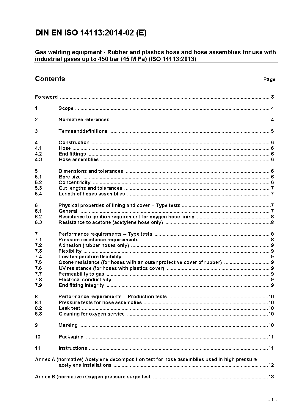 Gas welding equipment - Rubber and plastics hose and hose assemblies for use with industrial gases up to 450 bar (45 MPa) (ISO/FDIS 14113:2013); German version FprEN ISO 14113:2013