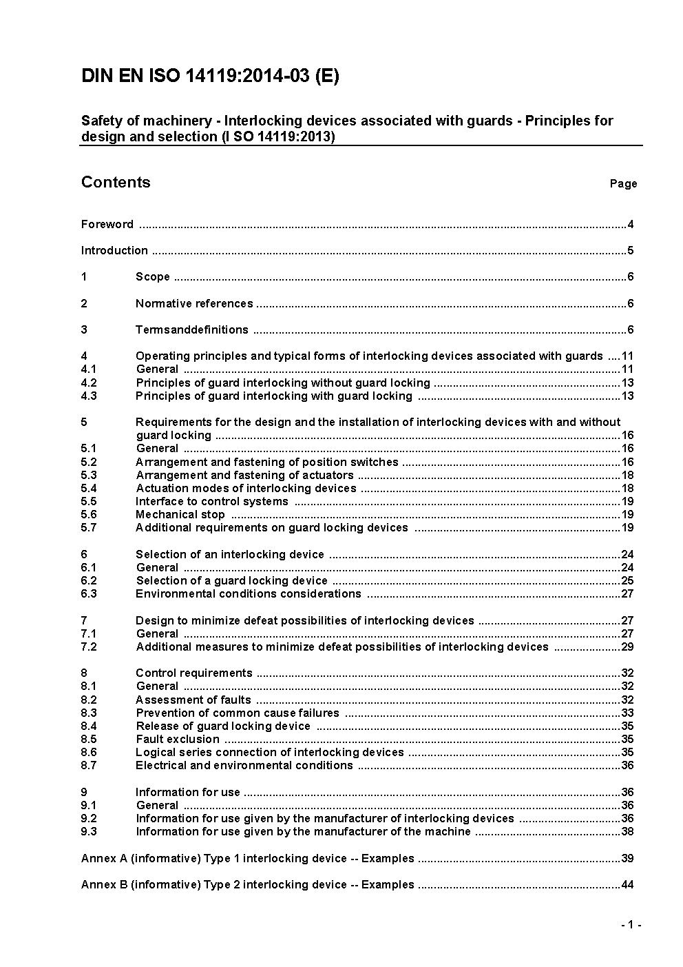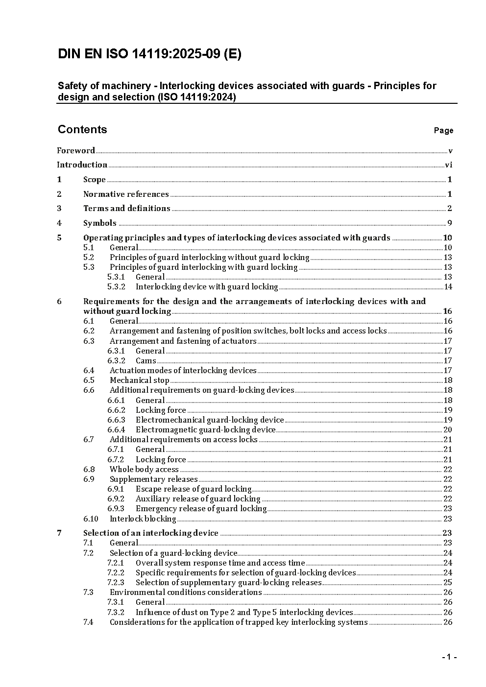 Safety of machinery - Interlocking devices associated with guards - Principles for design and selection (ISO/DIS 14119:2011); German version prEN ISO 14119:2011