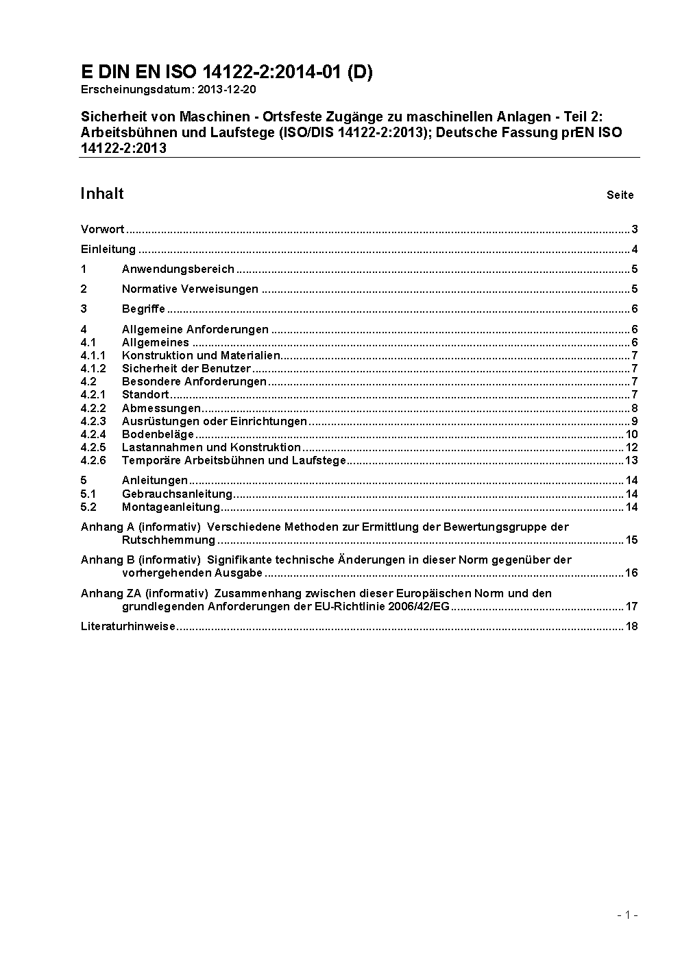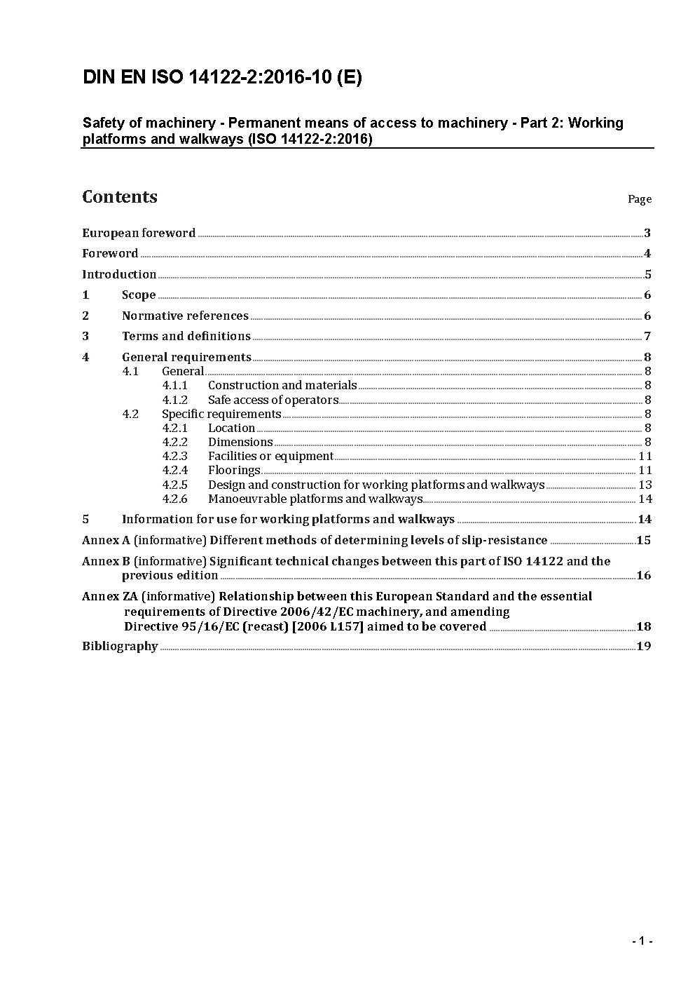 Sicherheit von Maschinen - Ortsfeste Zugänge zu maschinellen Anlagen - Teil 2: Arbeitsbühnen und Laufstege (ISO 14122-2:2001); Deutsche Fassung EN ISO 14122-2:2001