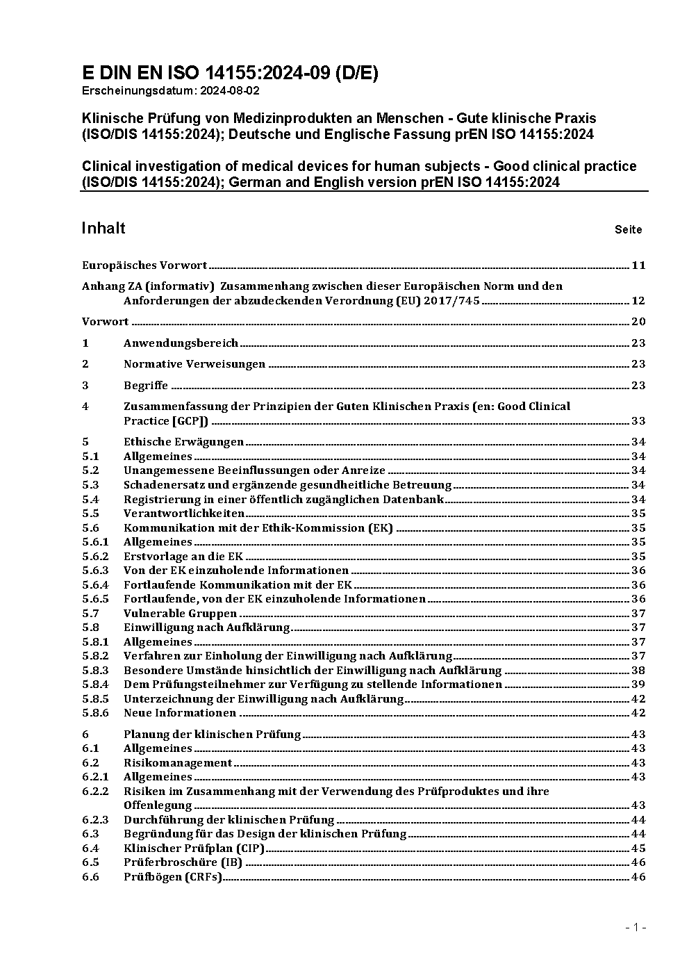Prévu pour remplacer DIN EN ISO 14155 (2012-01).