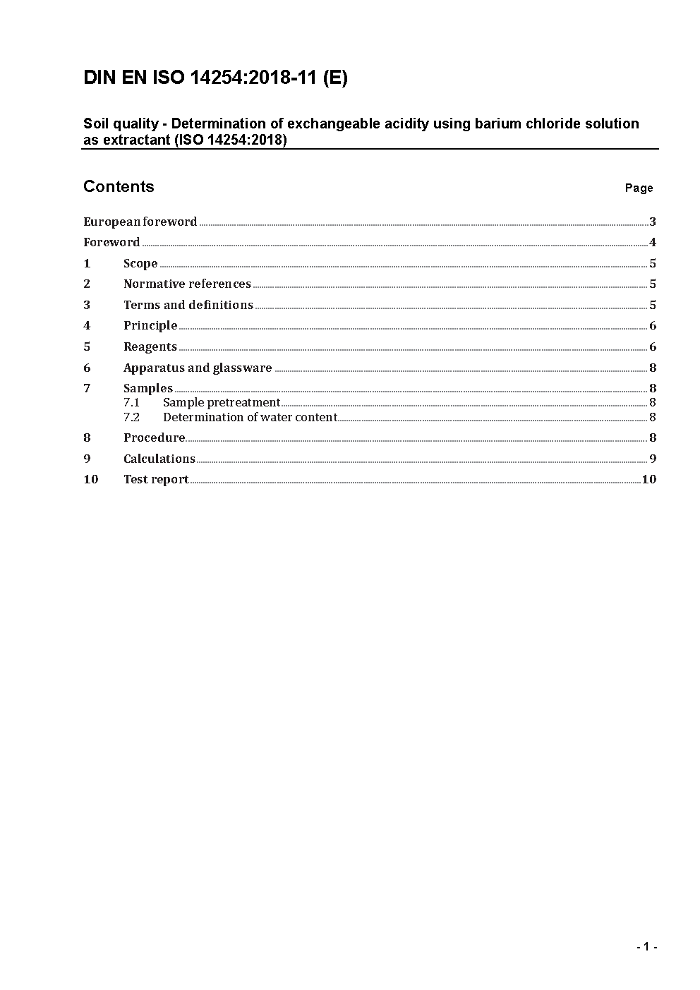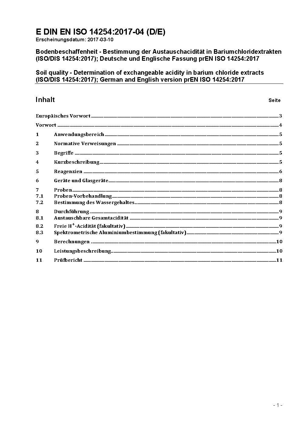Bodenbeschaffenheit - Bestimmung der Austauschacidität unter Verwendung einer Bariumchloridlösung als Extraktionsmittel (ISO 14254:2018); Deutsche Fassung EN ISO 14254:2018