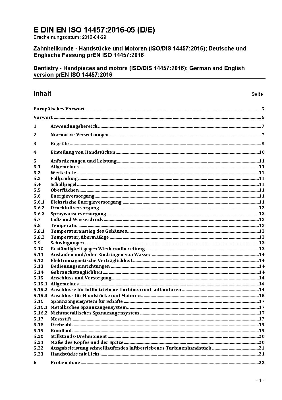 Dentistry - Handpieces and motors (ISO 14457:2017); German version EN ISO 14457:2017