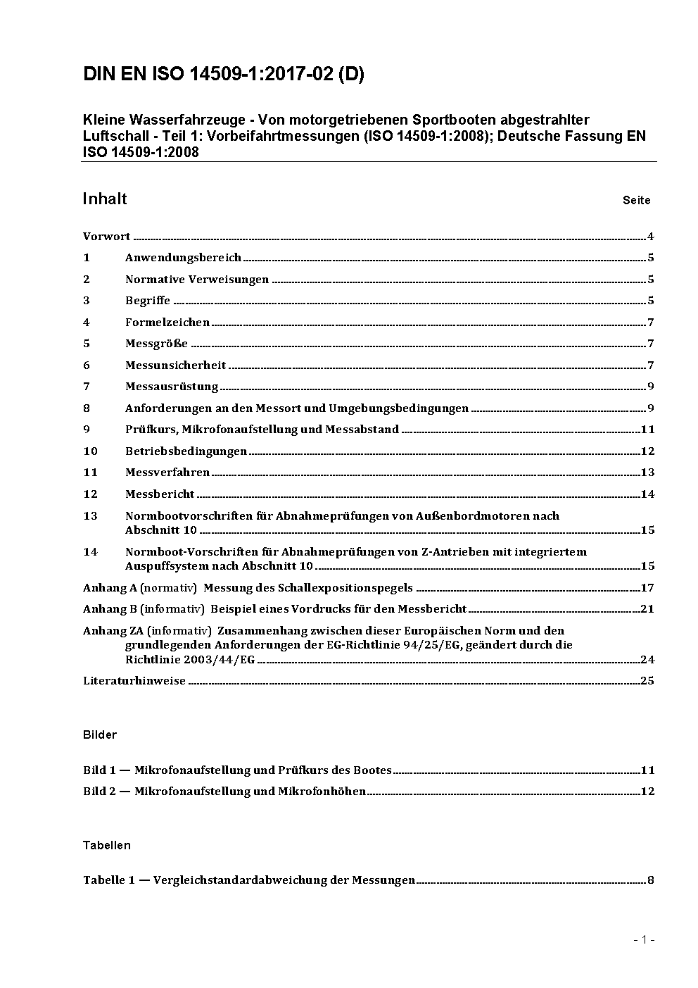Kleine Wasserfahrzeuge - Von motorgetriebenen Sportbooten abgestrahlter Luftschall - Teil 1: Vorbeifahrtmessungen (ISO 14509-1:2008); Deutsche Fassung EN ISO 14509-1:2008