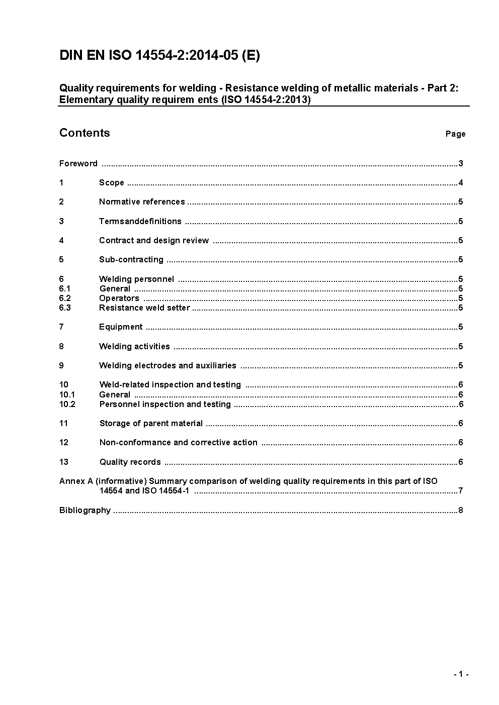 Quality requirements for welding - Resistance welding of metallic materials - Part 2: Elementary quality requirements (ISO 14554-2:2000); German version EN ISO 14554-2:2000