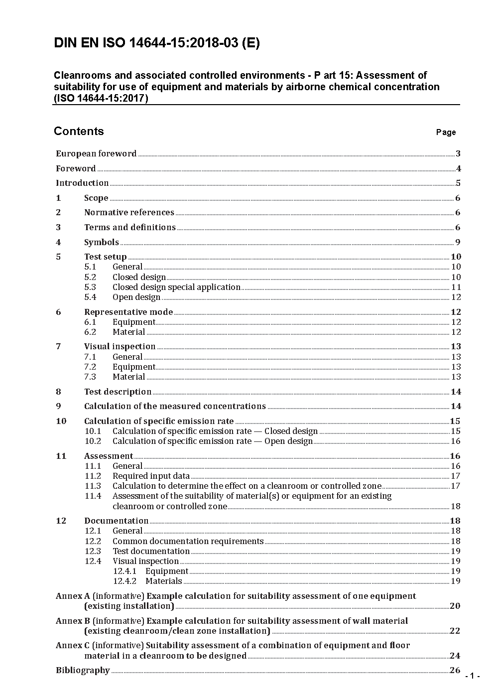Cleanrooms and associated controlled environments - Part 15: Assessment of suitability for use of equipment and materials by airborne chemical concentration (ISO/FDIS 14644-15:2025); German and English version prEN ISO 14644-15:2025