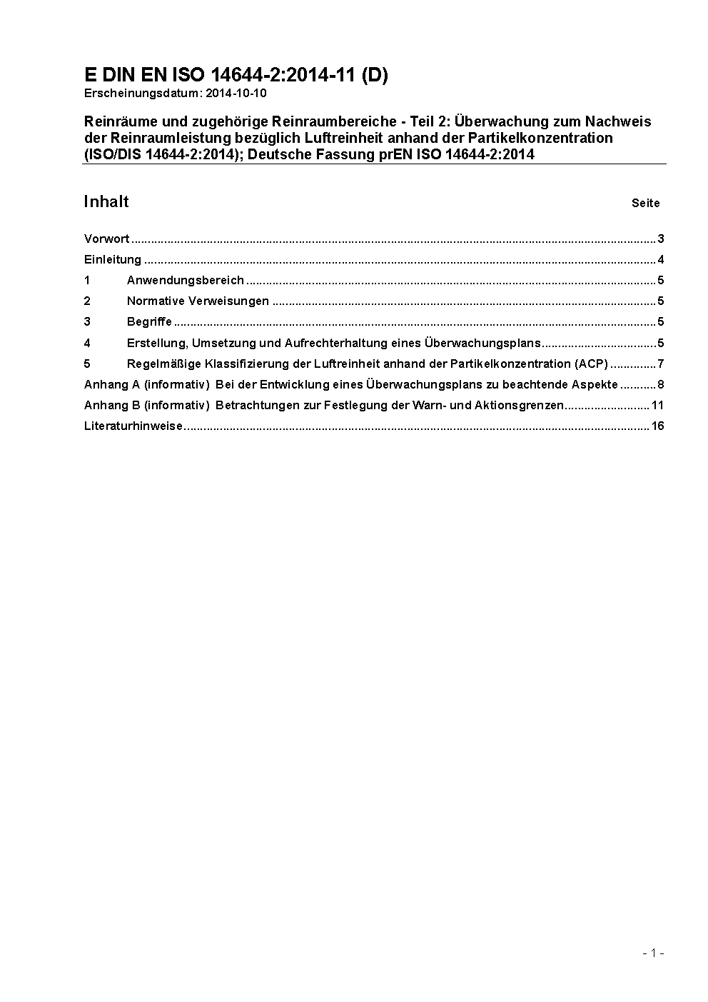 Prévu pour remplacer DIN EN ISO 14644-2 (2001-02).