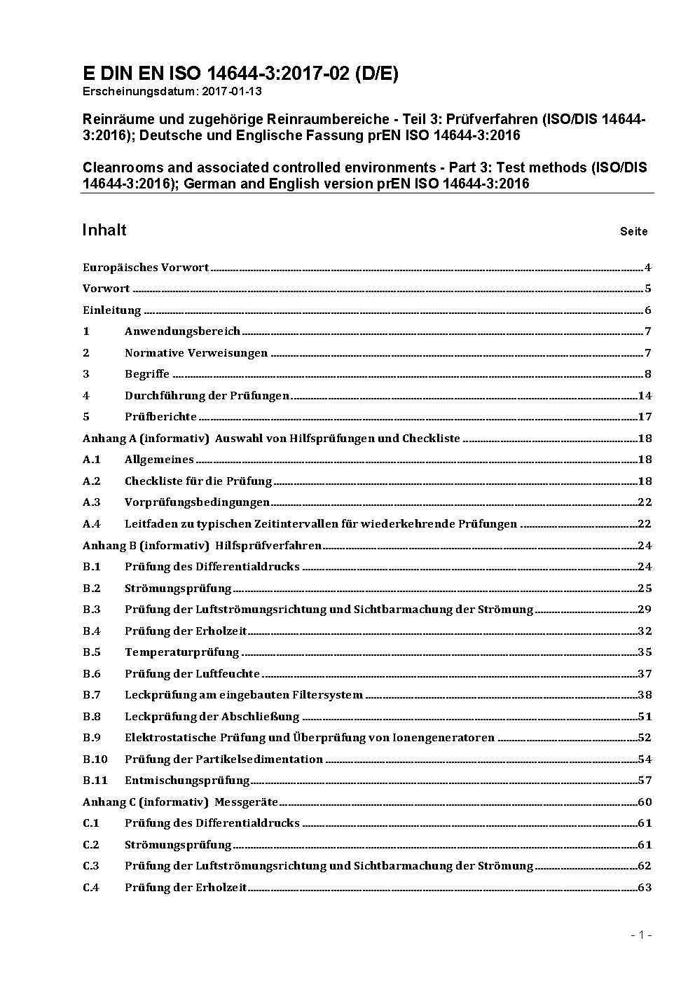 Prévu pour remplacer DIN EN ISO 14644-3 (2006-03).